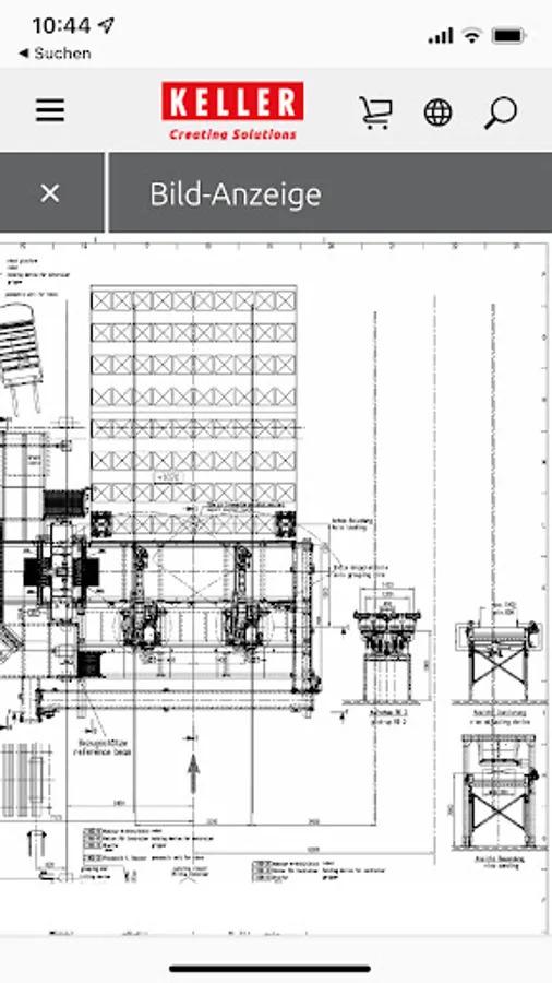 If the company has several plants, first call up your respective plant. Select the machine for which you need information or spare parts from the Icon bar below. Then you have access to the operating instructions and the documentation of the installed components. To select a spare part, you have the option of searching for the spare part directly via the spare parts list or identifying it in advance via the drawing. To do this, simply tap on the desired drawing. Then click on the enquiry basket of the desired item to add it to the enquiry.