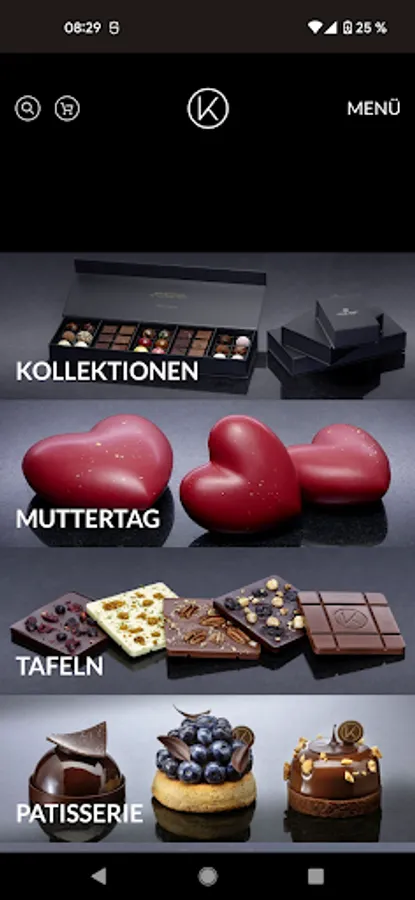 Order our pralines, chocolate creations and popular tarts whenever you like, very simply while on the go.
