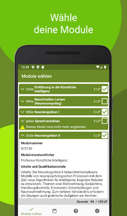 • Choose modules