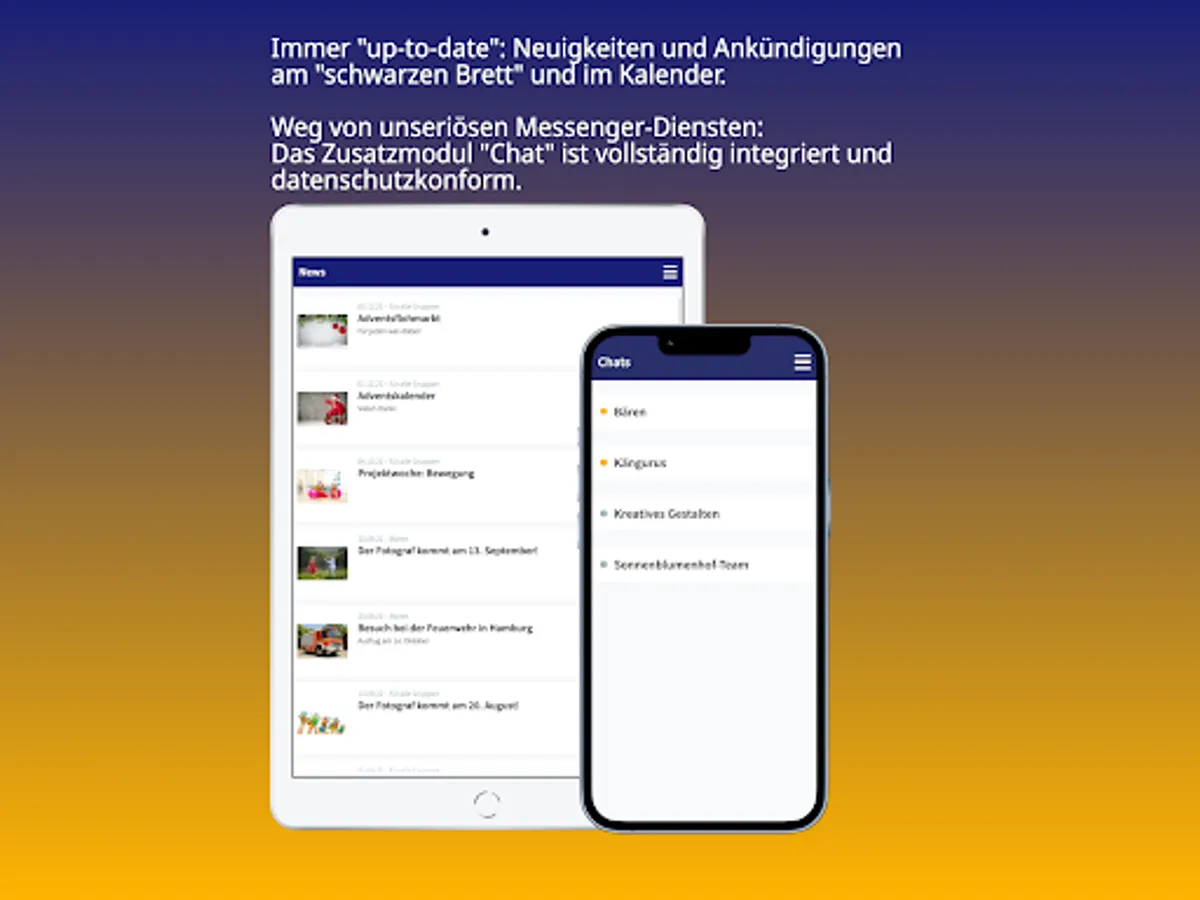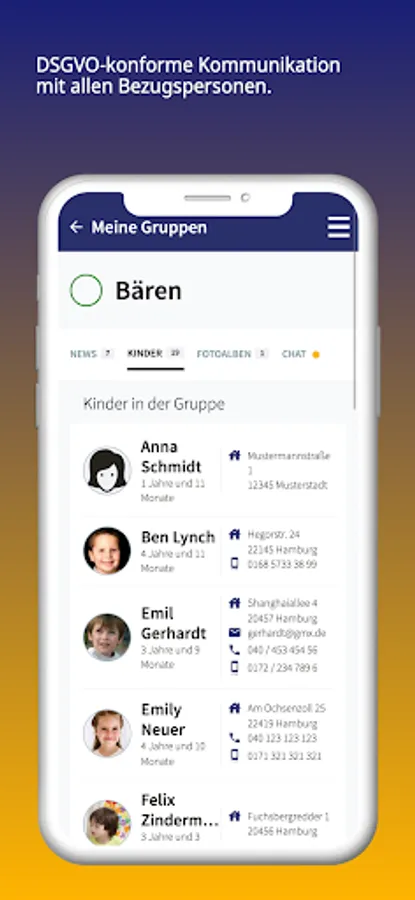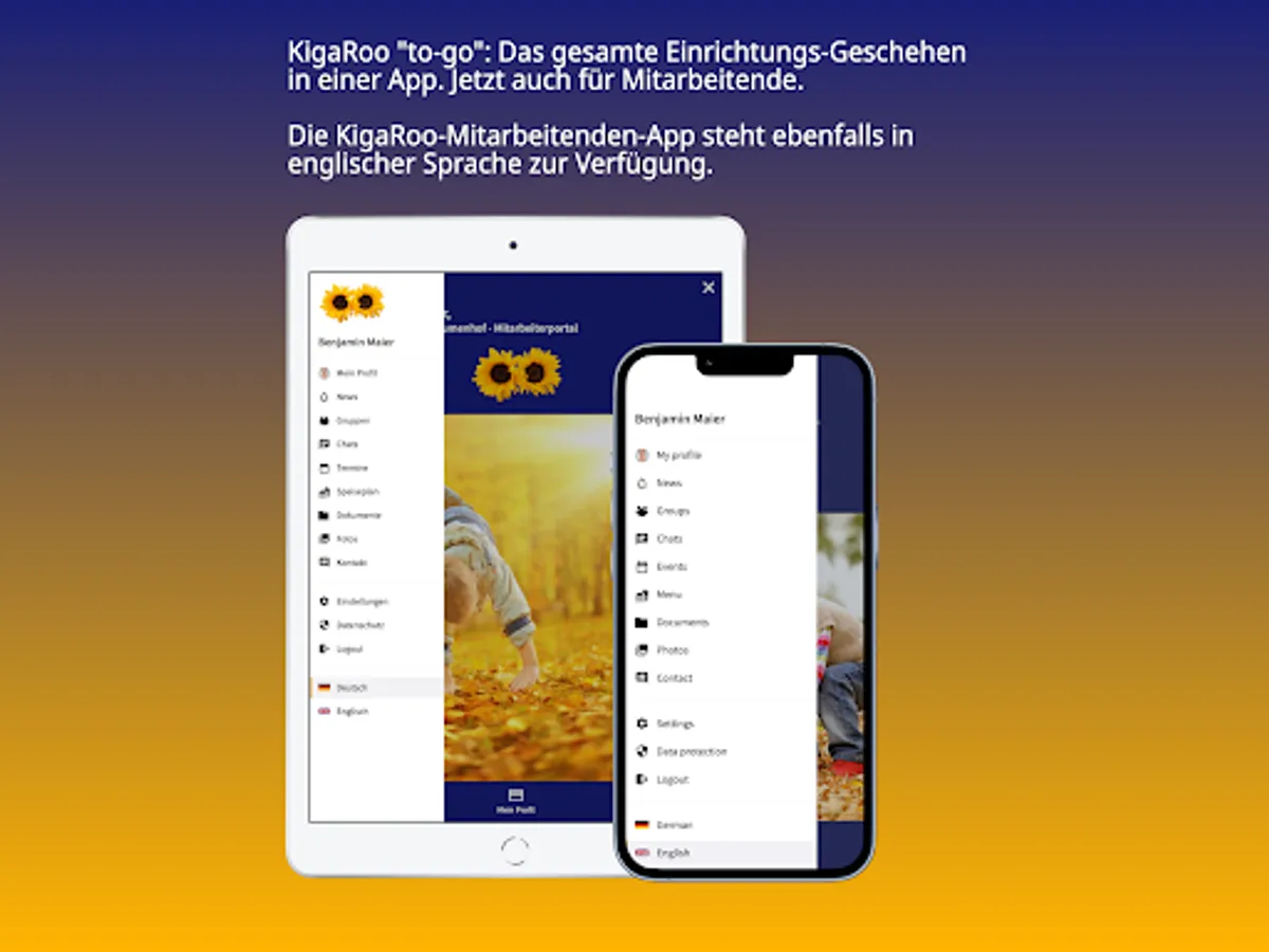 Emergency contacts for trips, the latest appointments, important files, photo albums, menus, group chat and even time tracking can be accessed via the new KigaRoo app. On request also in English. So all the information is in one place and quickly to hand, even when you’re on the go!