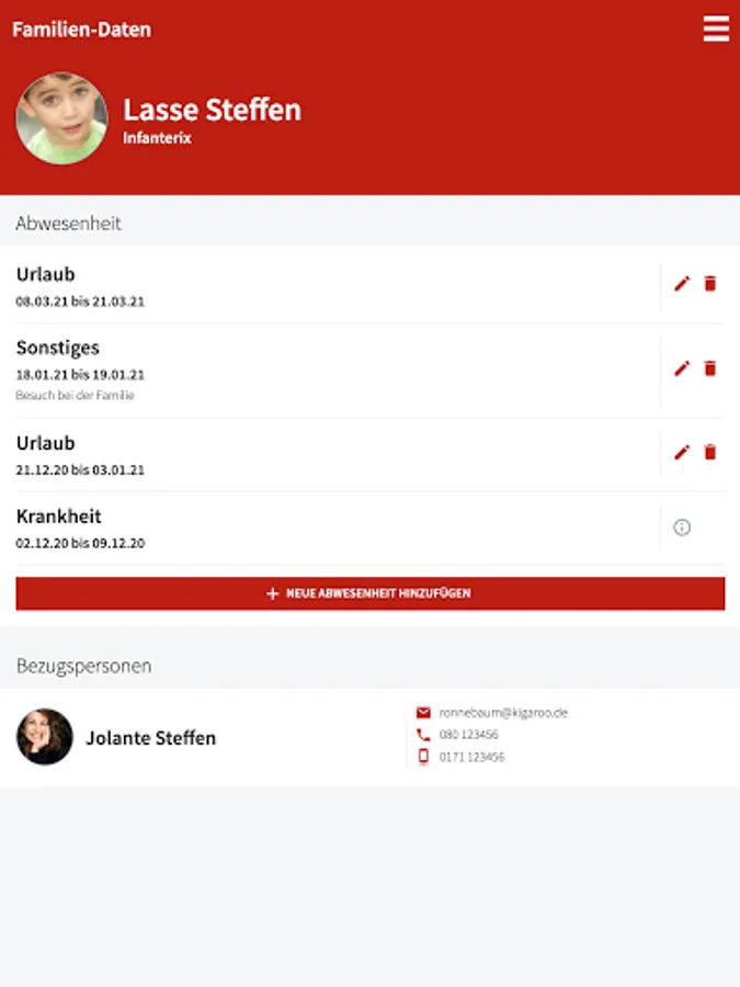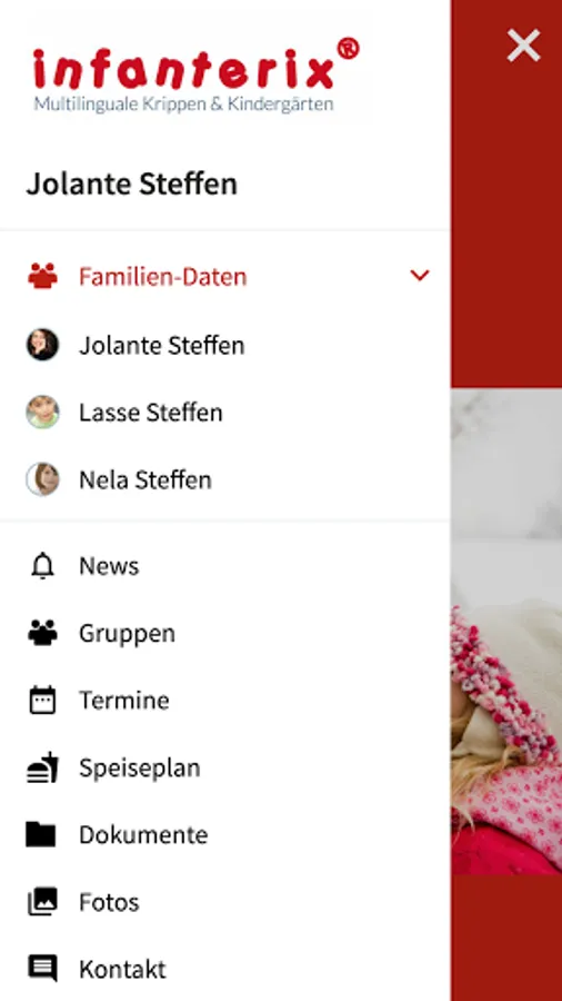 The Infanterix app for parents makes daily communication about looking after your children easier for you. With the app, you have all the news and important appointments for your child's facility safely and conveniently at a glance. And the best thing about it: The Infanterix app is free and is also fun! For example, if your child cannot go to the daycare center due to illness, simply and conveniently notify the educators at your daycare center using the app's integrated absence function. The existing address book enables you to comfortably make direct contact with other parents in the group. You can also upload profile pictures for your child and yourself and specify which of your contact details should also be visible to other parents. Automatically by email or push message - you decide whether and how you want to be informed about calendar entries, news or uploaded files. Use access to news, the weekly menu, photo albums and appointments at any time. So you are always up to date and have an insight into your children's daily routine even when you are out and about. You also have the option of using the app to view your childcare costs.