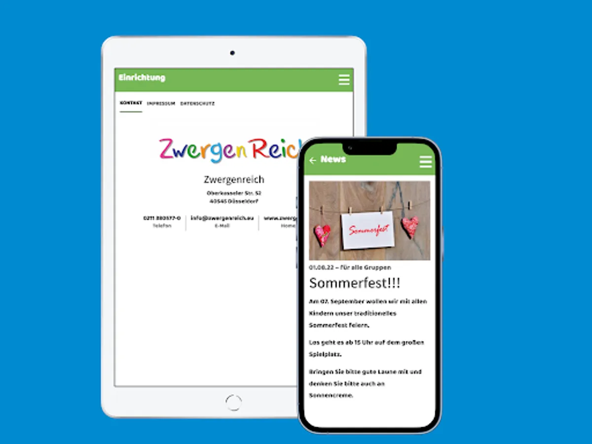 The ZwergenReich app for parents makes it easier for you to communicate every day about caring for your children. With the ZwergenReich app you have all the news and important dates of your child's kindergarten safely and conveniently at a glance. And the best thing about it: The ZwergenReich app is free and fun too!