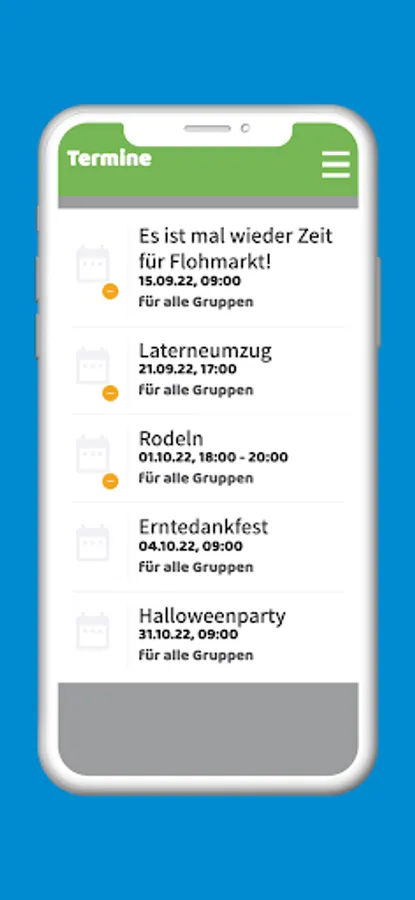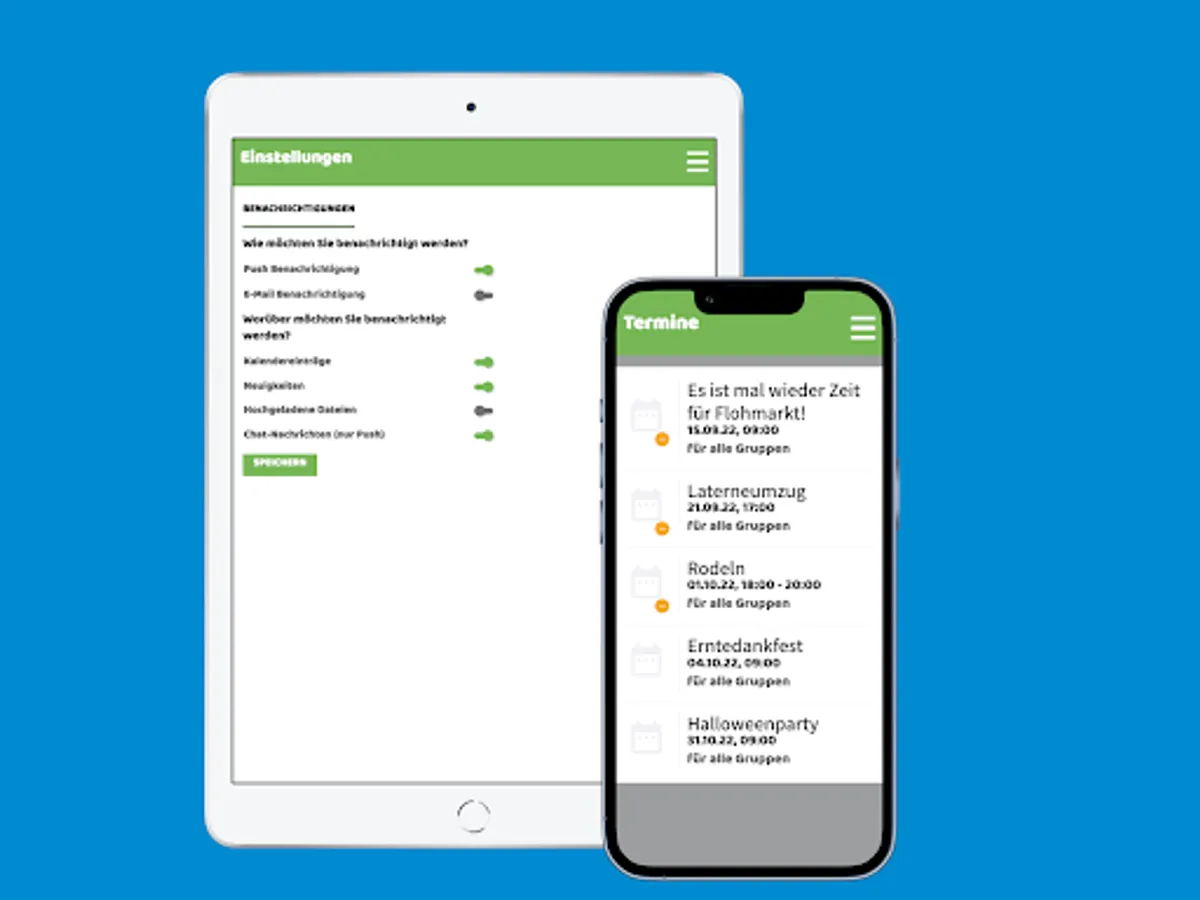 Automatically by e-mail or push message - you decide whether and how you want to be informed about calendar entries, news or uploaded files. Use the access to news, the weekly menu, photo albums and appointments at any time. So you are always up to date and have an insight into the daily routine of your children in the kindergarten even when you are away.