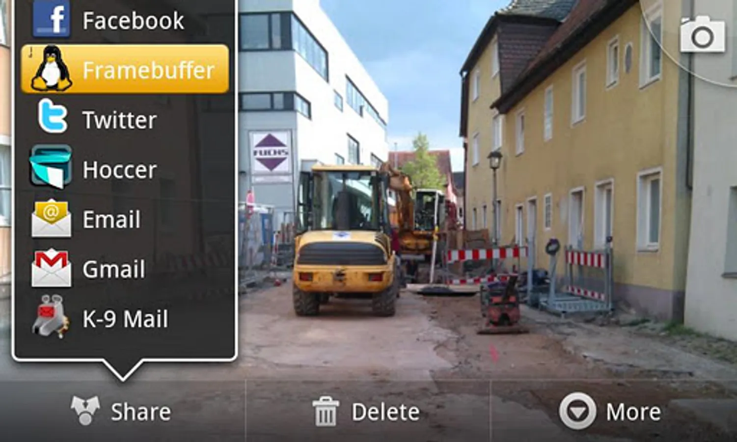 Send photos from any app to an attached Linux framebuffer device like a DisplayLink monitor/adapter.