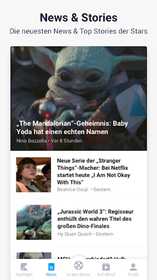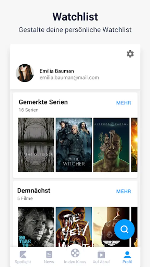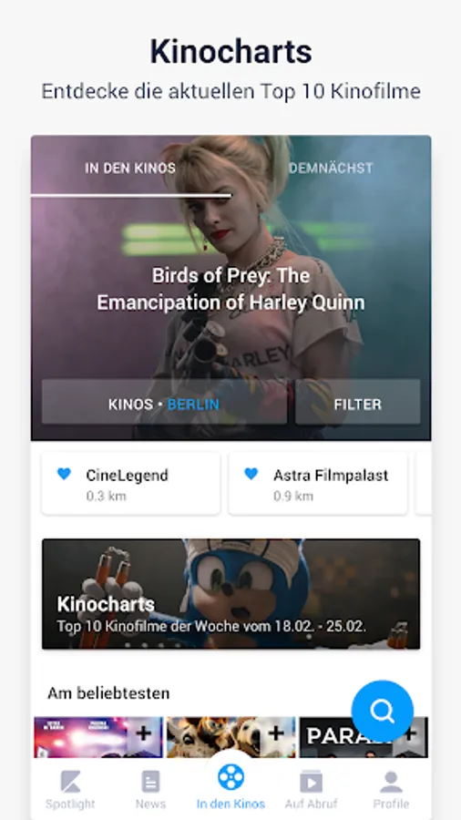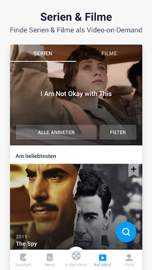 Germany's most popular cinema website is proud to present you the newly designed and updated version of our mobile app! It allows you to find show times for all films in cinemas near you. If you can't decide, there is a lot more information about each film, such as trailers, pictures, summaries, list of actors and more. And if you want to find a movie or a series for home theater - we can help too! Our app now offers you a complete list of all films and series that are available from all streaming providers such as Netflix, iTunes, Amazon, GooglePlay, Sky, Microsoft and Maxdome! And that's not even all - here is a list of all the important features that you can use in the app: