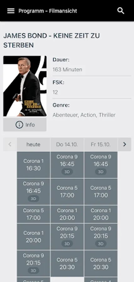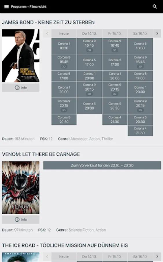 Here you can buy cinema tickets for your favorite film in less than a minute. Fast, safe, easy and without queuing at the box office. Simply book your film from the current cinema program and you will receive the tickets easily and conveniently as an e-ticket on your smartphone and to your e-mail address.