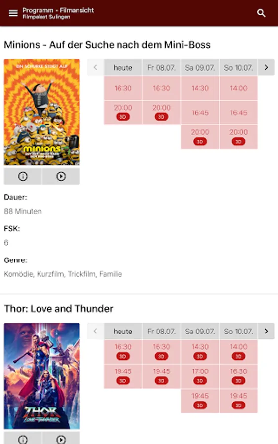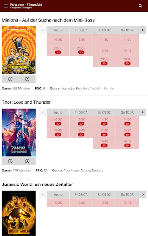 Here you can buy cinema tickets for your favorite film in less than a minute. Fast, safe, easy and without queuing at the box office. Simply book your film from the current cinema program and you will receive the tickets easily and conveniently as an e-ticket on your smartphone and to your e-mail address.