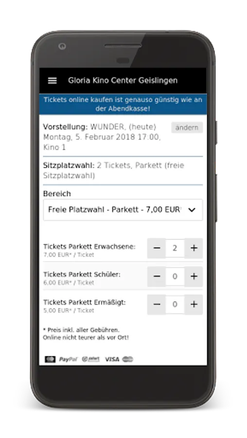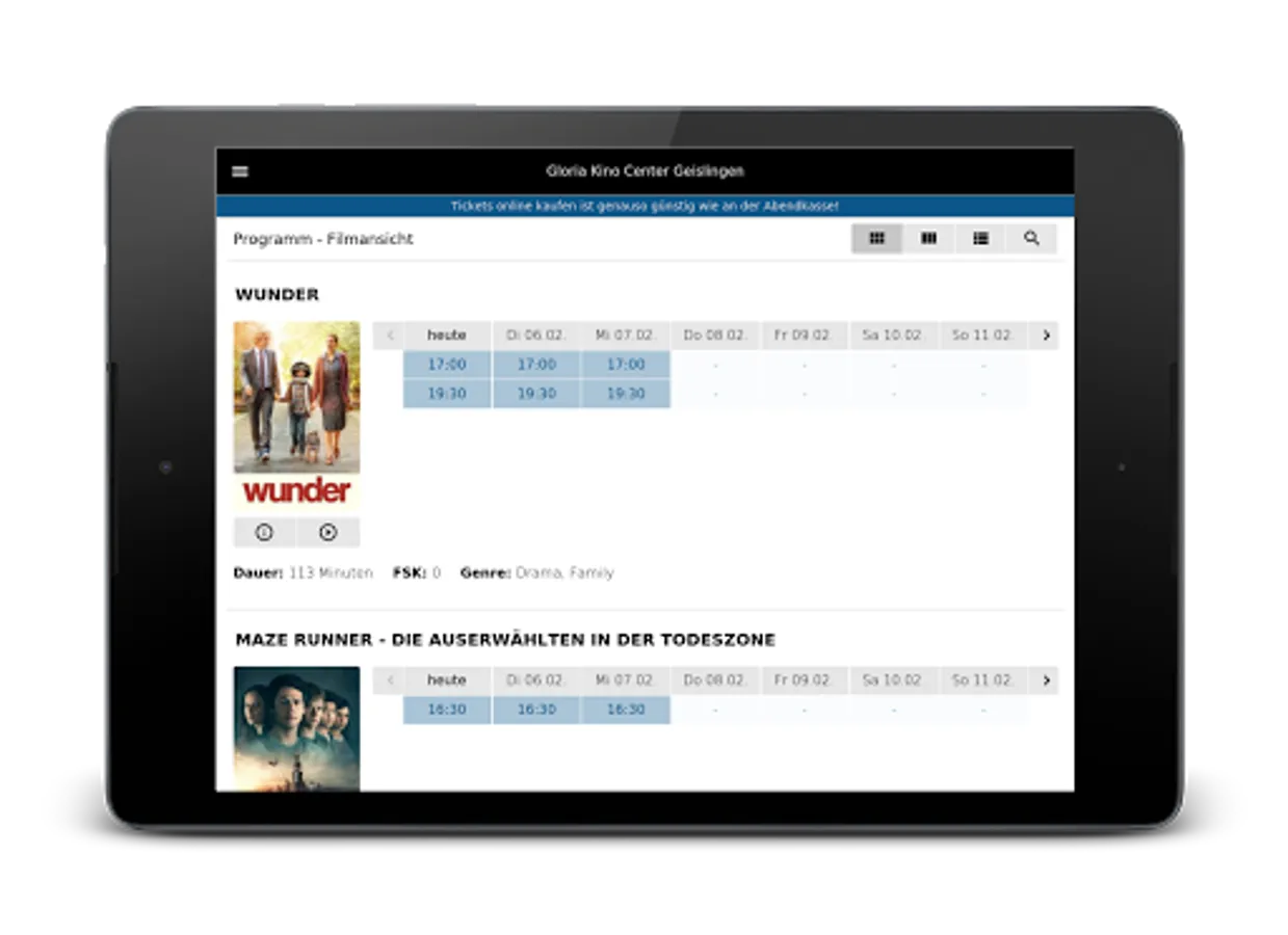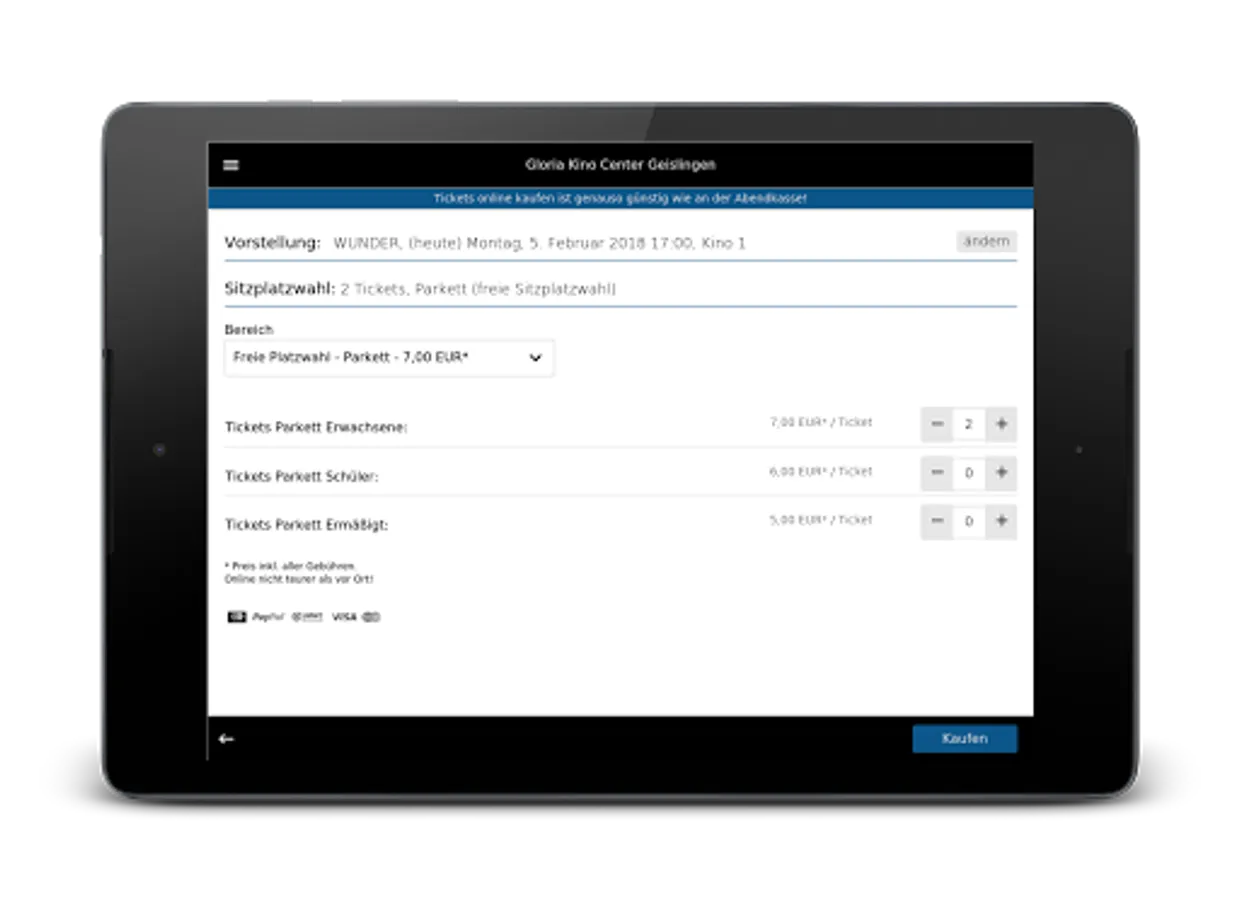 Here you buy in under a minute theater tickets for your favorite movie. Fast, secure, simple and without having to queue at the box office. Simply book your movie from the current movie listings and you'll get the tickets easily and conveniently as an e-ticket on your smartphone and your email address.