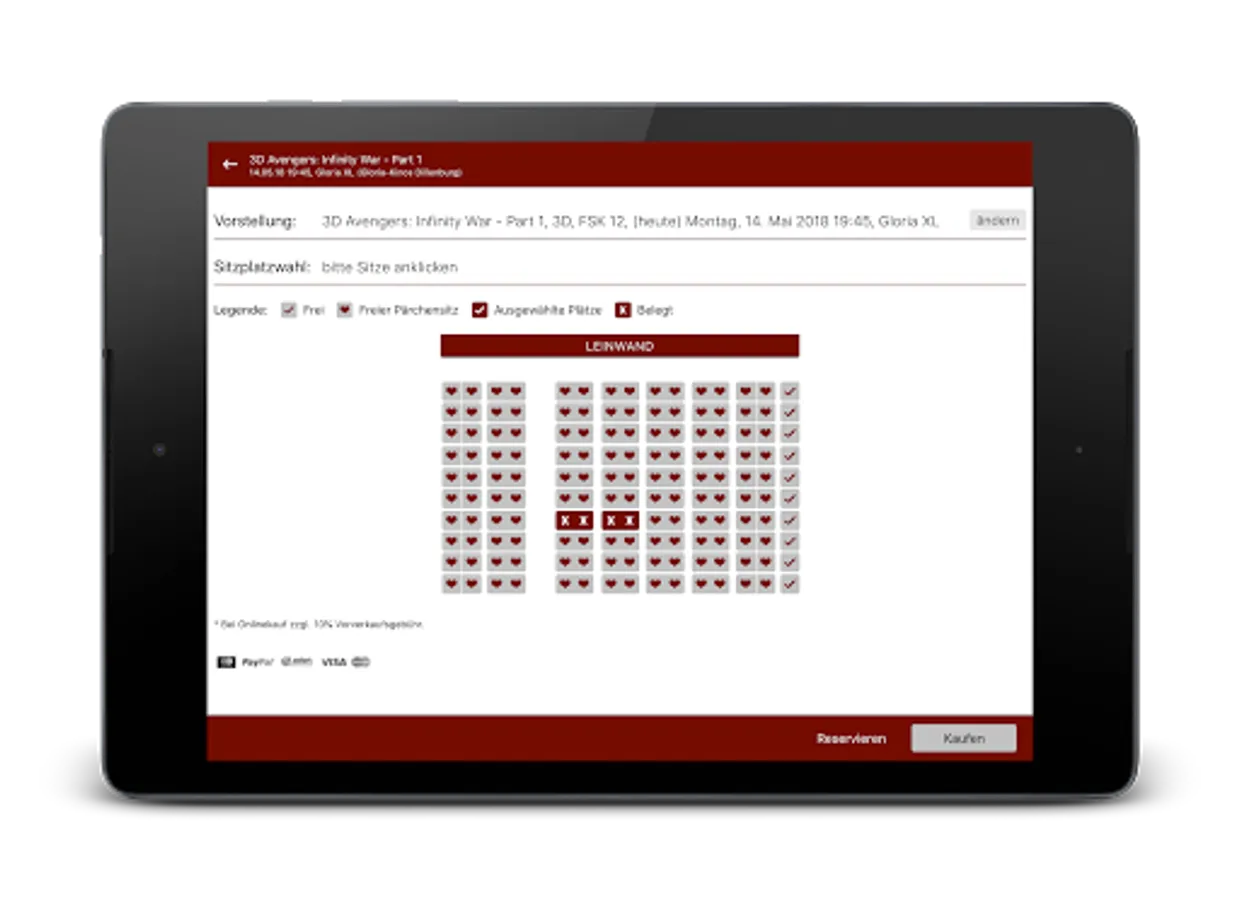 Here you book in under a minute theater tickets for your favorite movie. Fast, secure, simple and without having to queue at the box office. Simply book your movie from the current movie listings and you'll get the tickets easily and conveniently as an e-ticket on your smartphone and your email address.