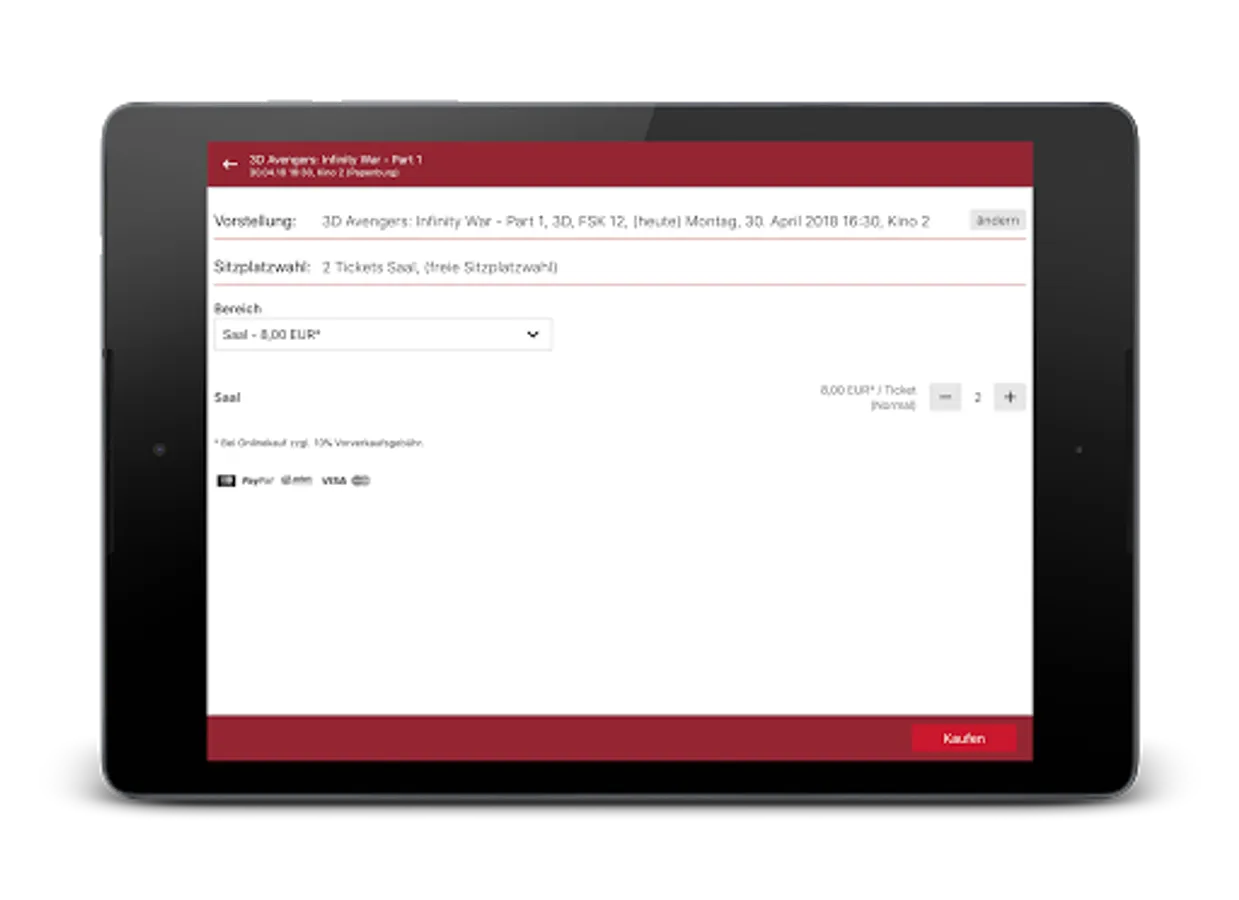 Here you can buy cinema tickets for your favorite movie in less than a minute. Fast, safe, easy and without having to queue at the box office. Simply book your movie from the current cinema program and you will receive the tickets simply and conveniently as an e-ticket on your smartphone and to your e-mail address.