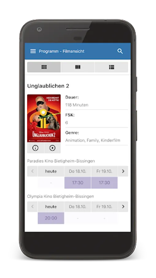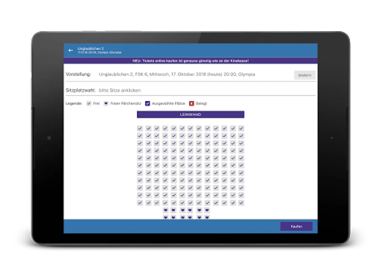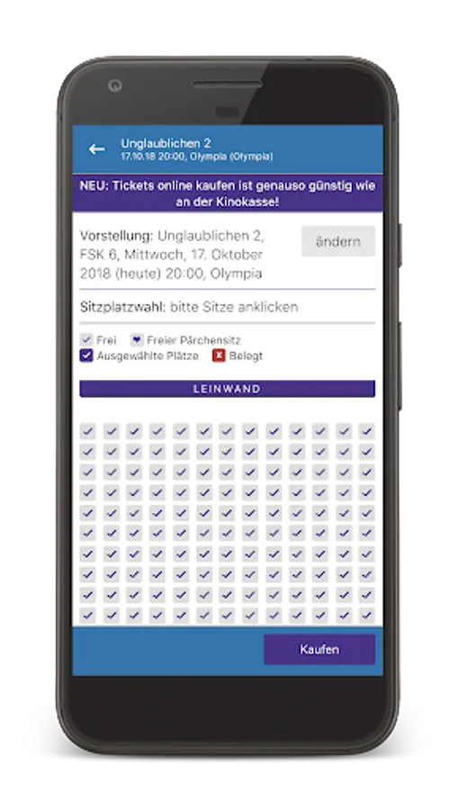 Here you can buy cinema tickets for your favorite movie in less than a minute. Fast, safe, easy and without having to queue at the box office. Simply book your movie from the current cinema program and you will receive the tickets simply and conveniently as an e-ticket on your smartphone and to your e-mail address.