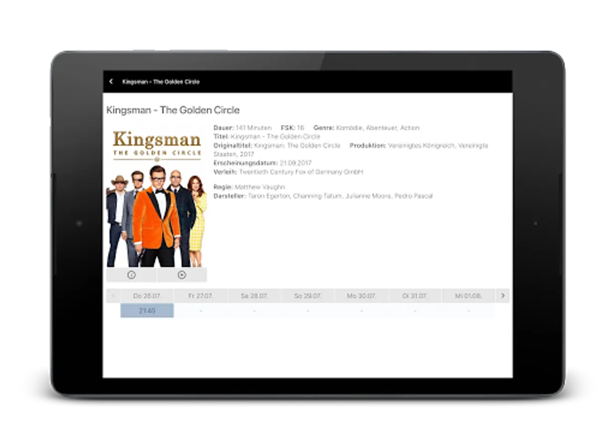 Here you buy in under a minute theater tickets for your favorite movie. Fast, secure, simple and without having to queue at the box office. Simply book your movie from the current movie listings and you'll get the tickets easily and conveniently as an e-ticket on your smartphone and your email address.