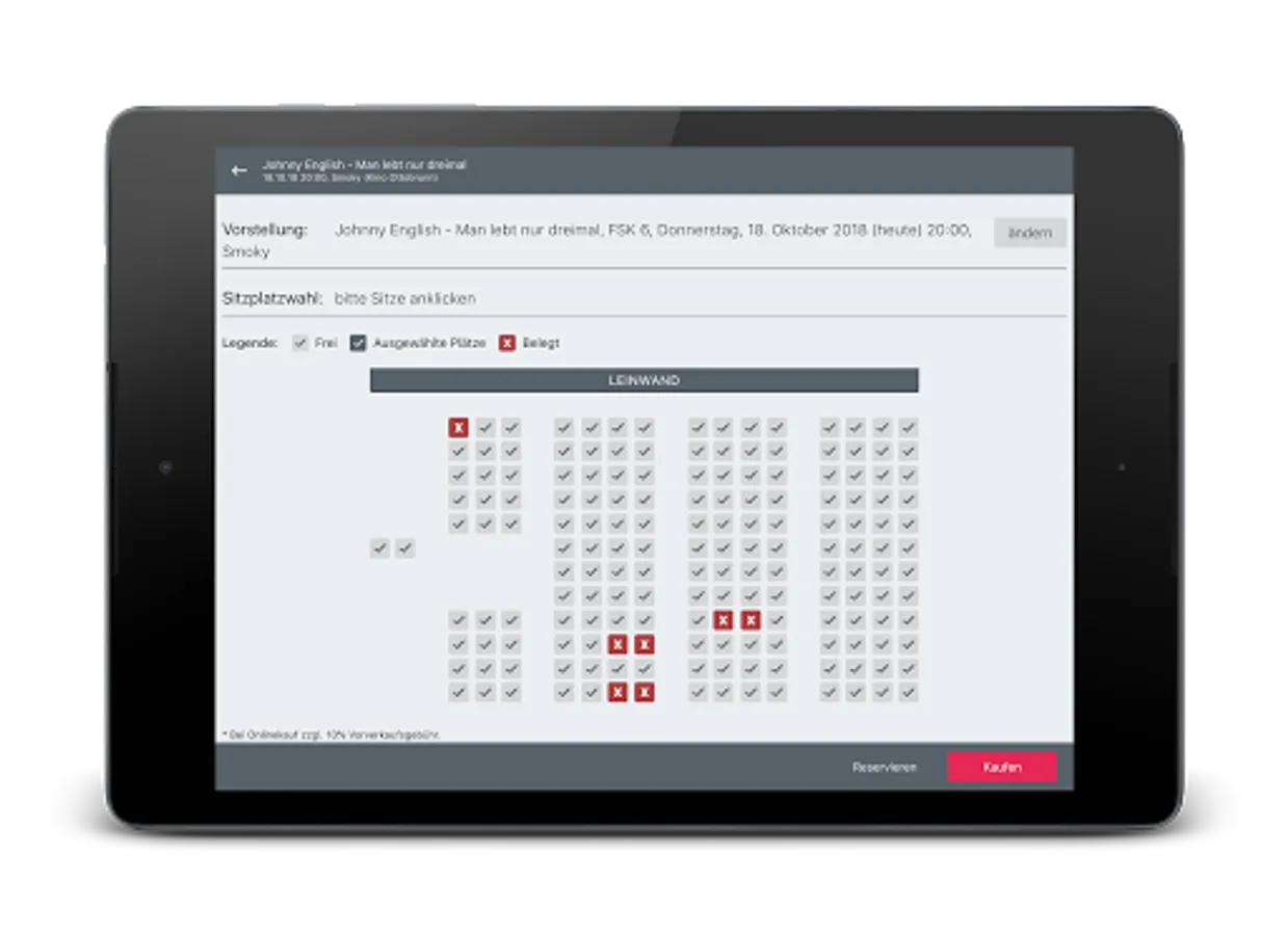 Here you can buy cinema tickets for your favorite movie in less than a minute. Fast, safe, easy and without having to queue at the box office. Simply book your movie from the current cinema program and you will receive the tickets simply and conveniently as an e-ticket on your smartphone and to your e-mail address.