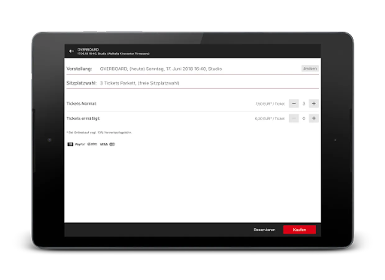 Here you buy in under a minute theater tickets for your favorite movie. Fast, secure, simple and without having to queue at the box office. Simply book your movie from the current movie listings and you'll get the tickets easily and conveniently as an e-ticket on your smartphone and your email address.