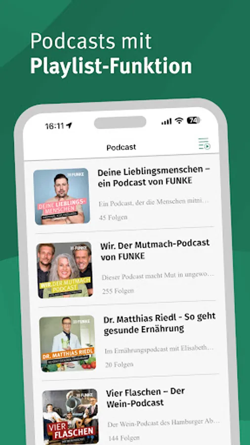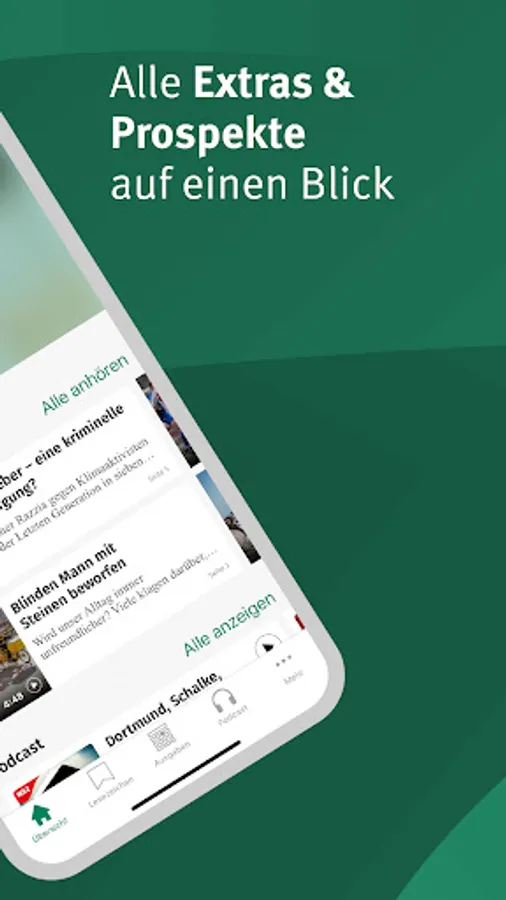 - Podcast: In the e-paper app you will find a variety of editorial podcasts - from the daily news overview to many special topics.