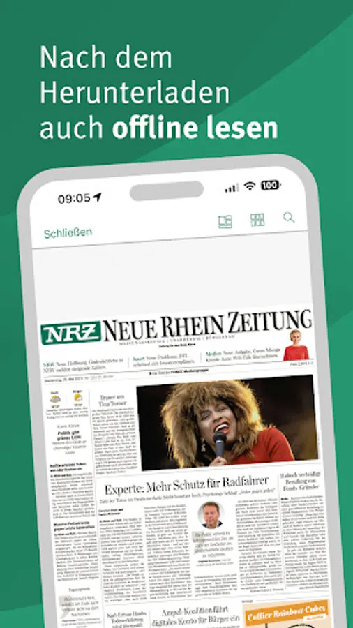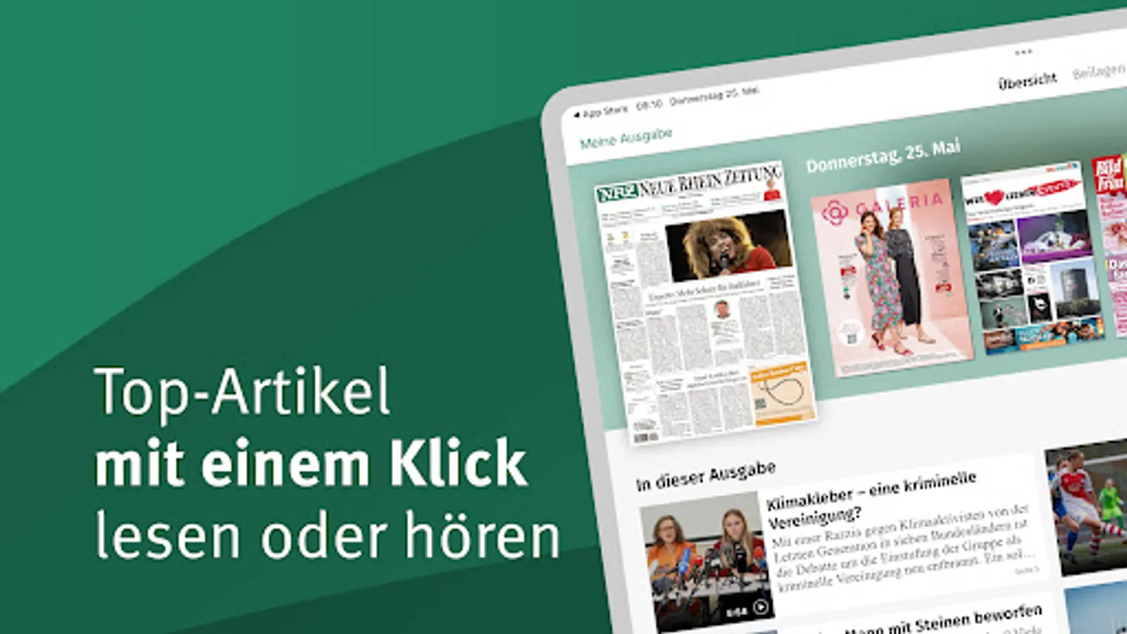 You can read all local editions of your NRZ in your e-paper app, including those from other regions, such as NRZ Duisburg, Düsseldorf, Mülheim or Oberhausen.