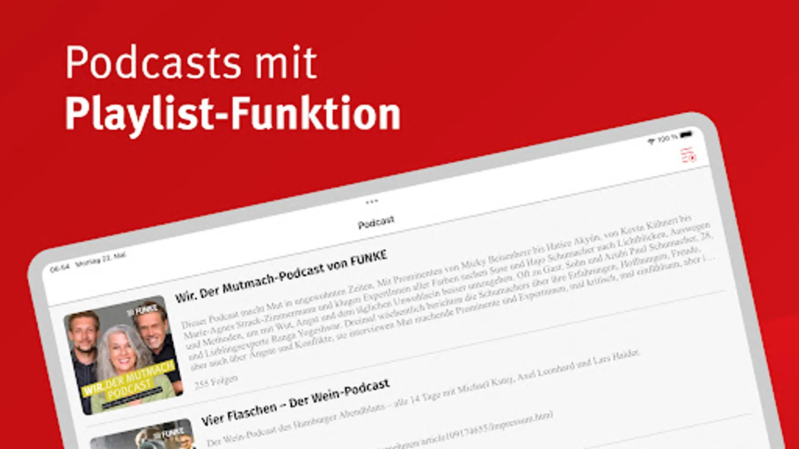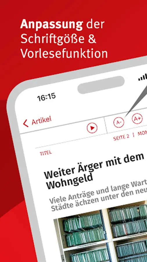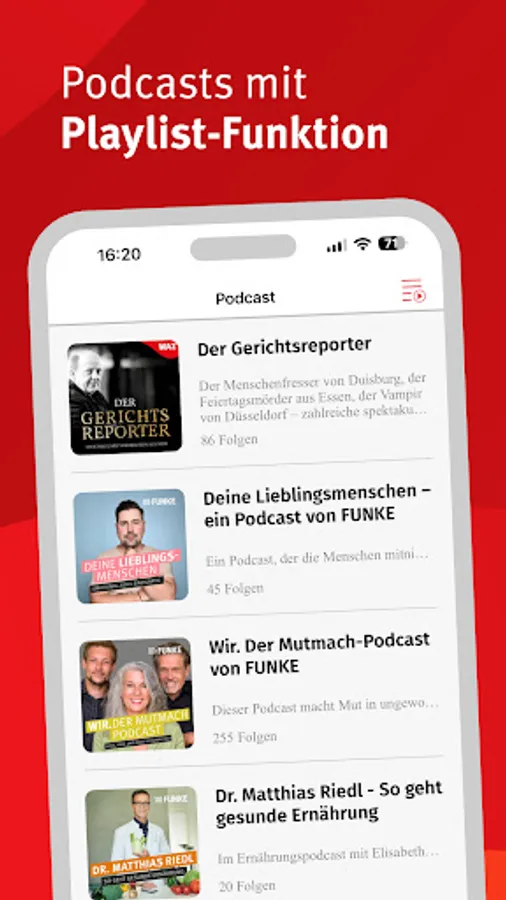 - Podcast: In the e-paper app you will find a variety of editorial podcasts - from the daily news overview to many special topics.