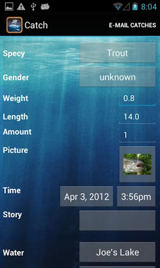 Efficiency - Whether fish specy, bait, or location, after the first entries the application learns them and offers them for future selection.