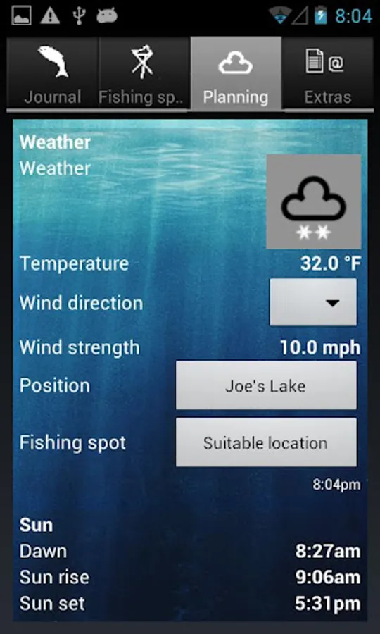 - Location - Record your fishing water, detailed location, and fishing spot.