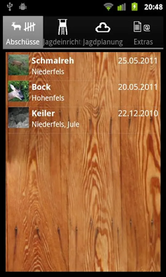 ✓ Efficiency - Whether game type, age class, hunting device, or location, after the first entries the application learns them and offers them for future selection.