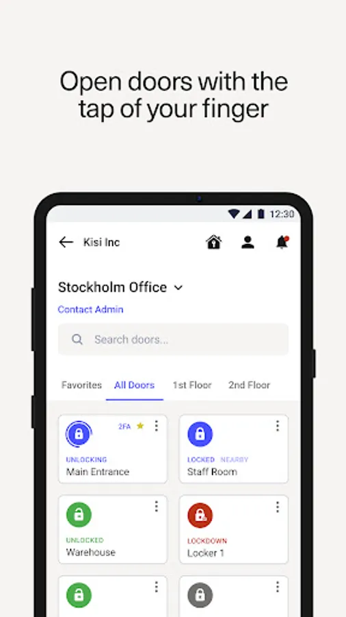 With the Kisi app, you can use your Android device to quickly and securely unlock any door equipped with Kisi.