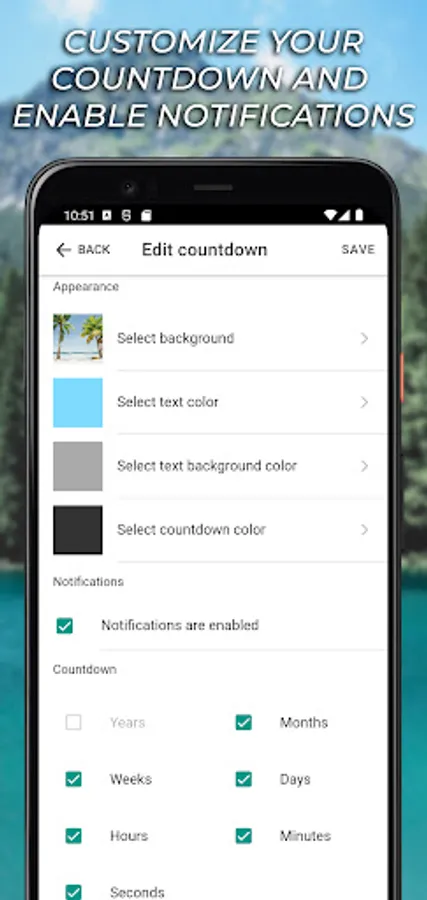 For many travel topics, we have already deposited free backgrounds for you in the app. You can easily take or upload your own picture. So make our countdown to your countdown!