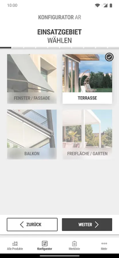 Your new awning, pergola or the shaded winter garden from KLAIBER is always a premium product made individually for you. Choose from a variety of modern fabrics and desinnies and put together your dream shade provider. Use our products to turn your terrace or garden into an outdoor living room - ready for every season. Be creative and mount your dream awning, your new pavilion or your new glass roof system virtually on your house wall. With just a few clicks you have configured your product and can try out your new awning in AR mode, extend and retract it, exchange the fabric design in real time or simply relax underneath and view details of the awning. Don't you like it? No problem. Simply exchange the product, the color of the frame or the pattern of the awning fabric. Real time.