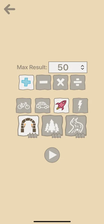 Before you take off, you choose which kind of problems you want to solve: addition, subtraction, multiplication or division. Then select the number range (up to 10, 20, 50, 100 or 1000) and the Kobold is ready to go.