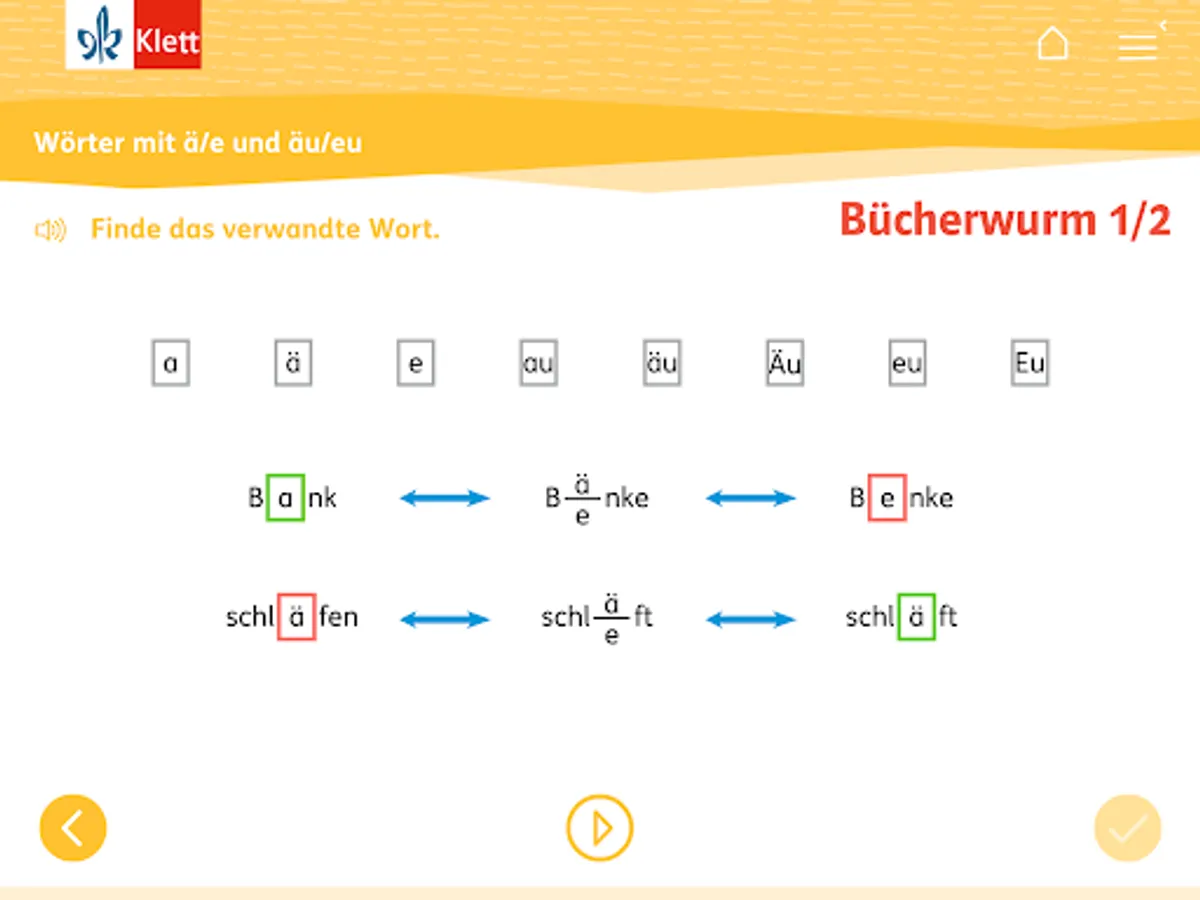 - Through exercises such as B. swinging, filling in gaps, reading carefully, drag & drop and marking, words of the basic vocabulary are trained effectively.