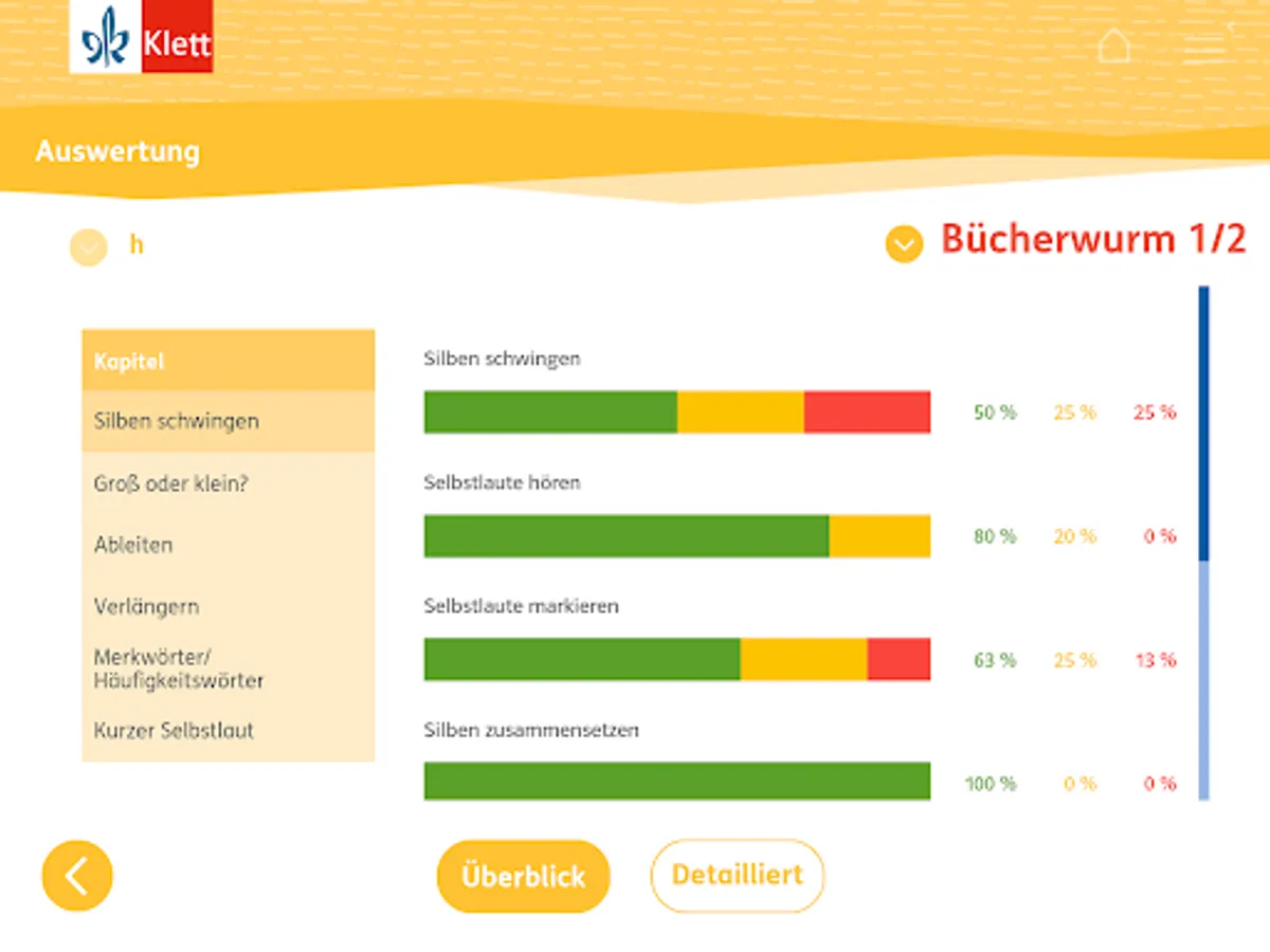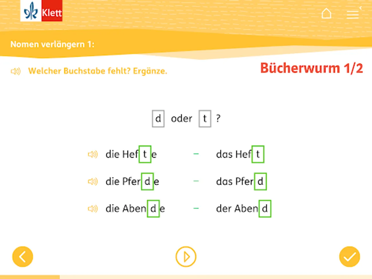 In line with the curriculum, the contents of the German lessons from grades 1 to 4 are practiced independently at home or in the classroom.