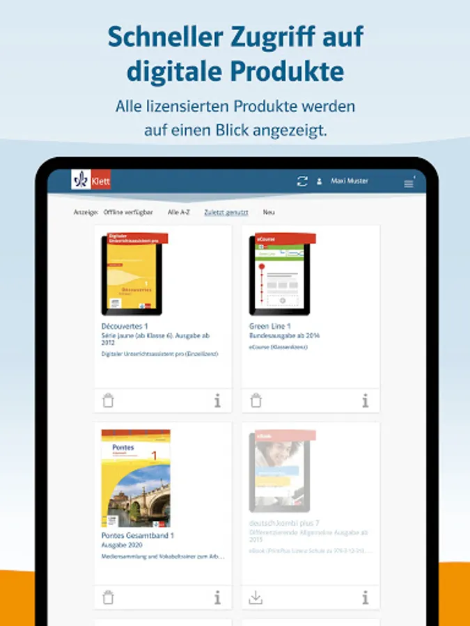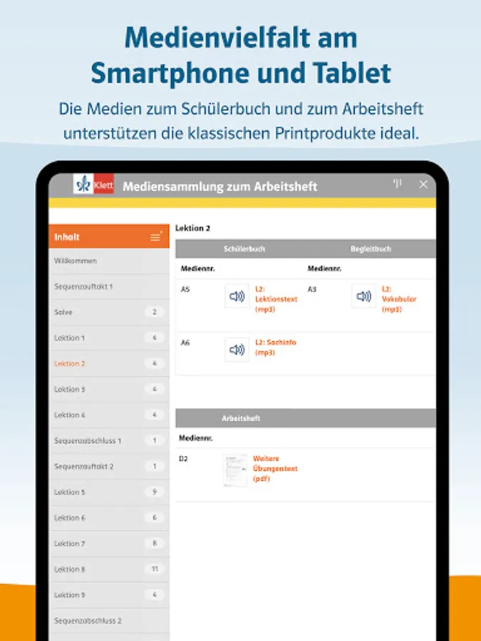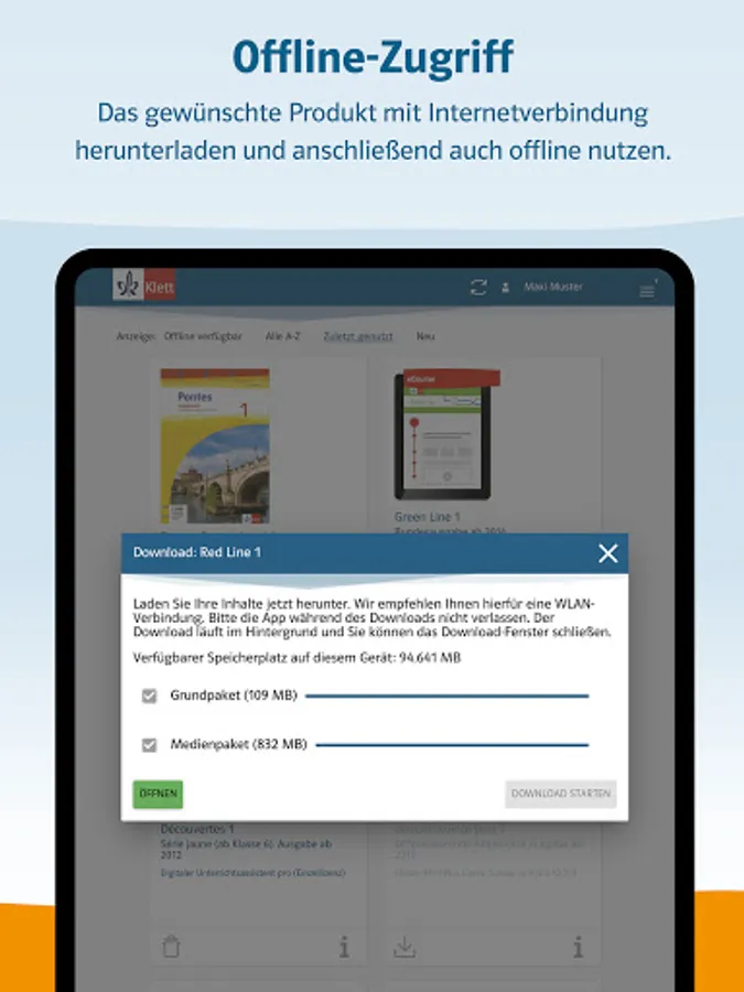 With the free Klett Lern app, you can use the digital products as well as audios and videos for your textbook on PCs, tablets and smartphones without an existing internet connection.