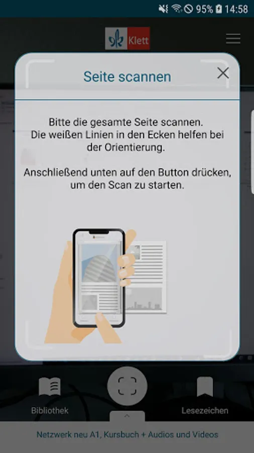 With the Klett Augmented App, all media files for the book are available quickly and free of charge - ideal for use in the classroom, at home or on the go. All you need is your book, a smartphone or tablet and the Velcro Augmented app. Hold your smartphone or tablet over a page in the book: the app automatically recognizes all stored audio files, videos or links and plays them directly on the device.