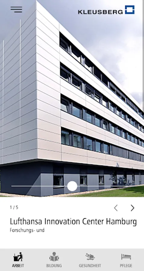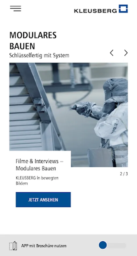 Discover in the KLEUSBERG app numerous best practice examples of industrial, office, administrative and educational buildings. With interactive films, interviews, picture galleries and floor plans, the app shows you why building concepts from KLEUSBERG provide the answers to the changes brought about by digitization, urbanization and new mobility solutions.