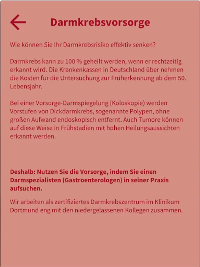 Therefore: Use preventive care by visiting an intestinal specialist (gastroenterologist) in his practice.