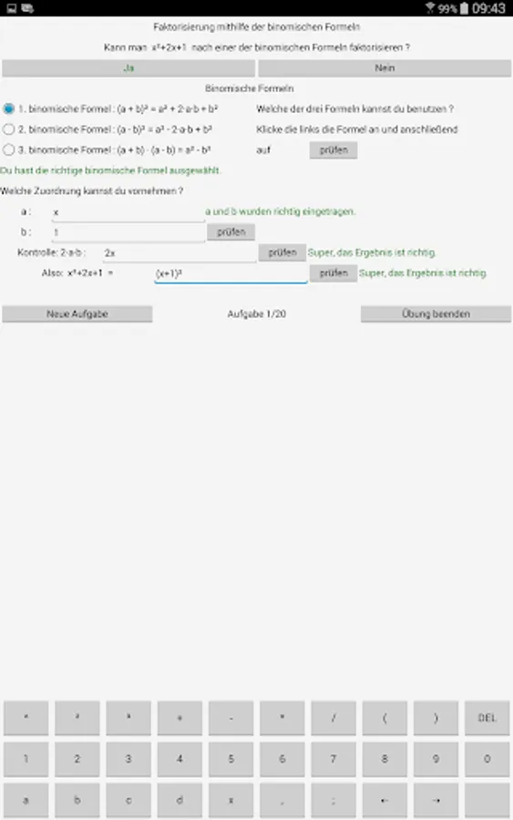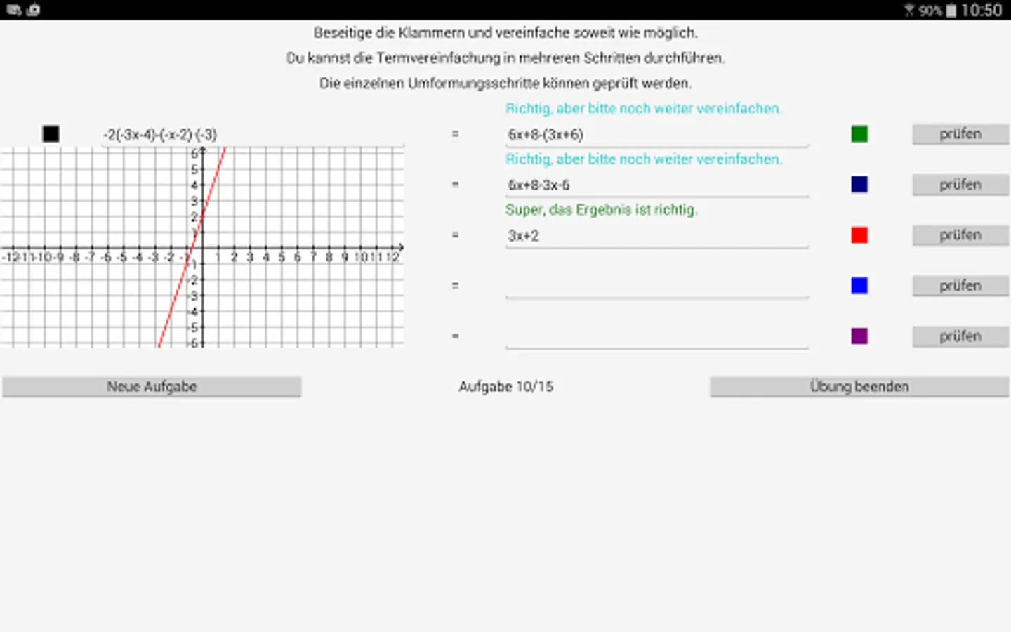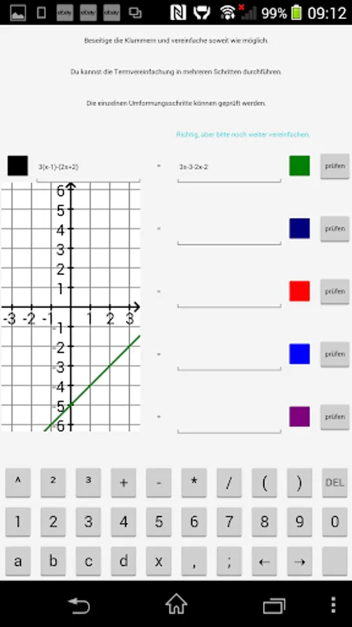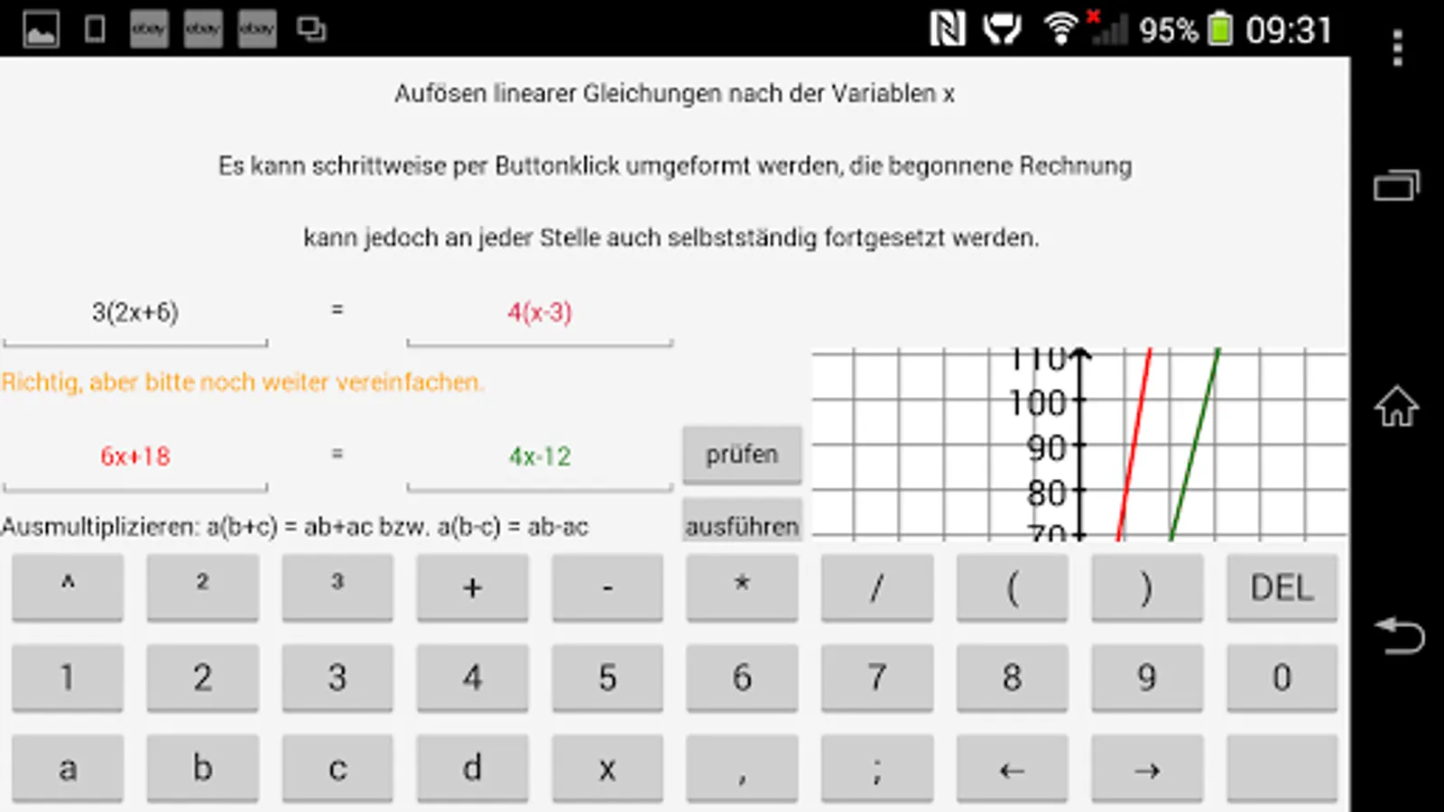 By 9 exercises of the program to pupils / students are given the opportunity, term transformations and linear equations work up as independently as possible in the fields of existing deficits. The specific capabilities of your computer (aids, differentiated controls, illustrating ways) are used.