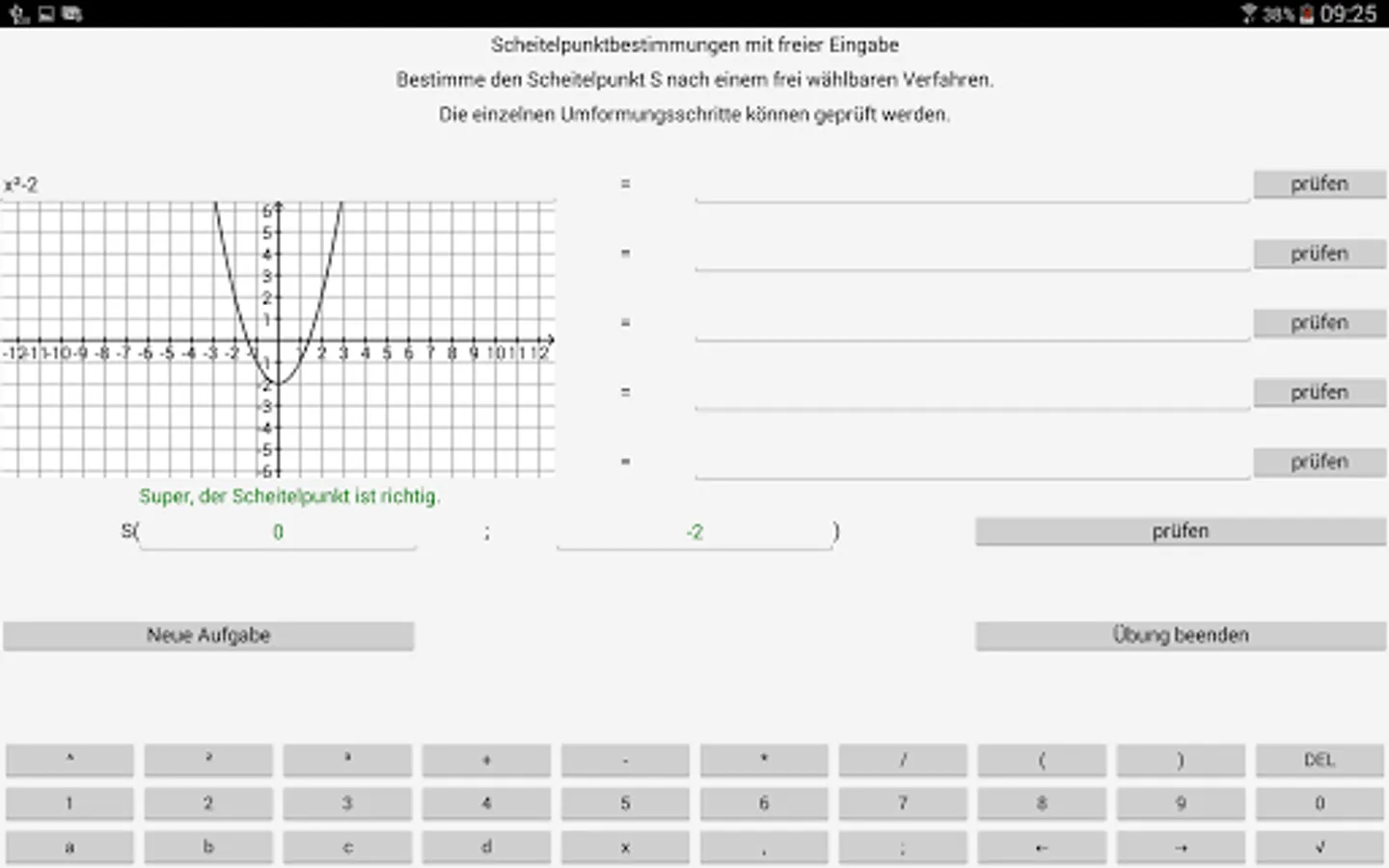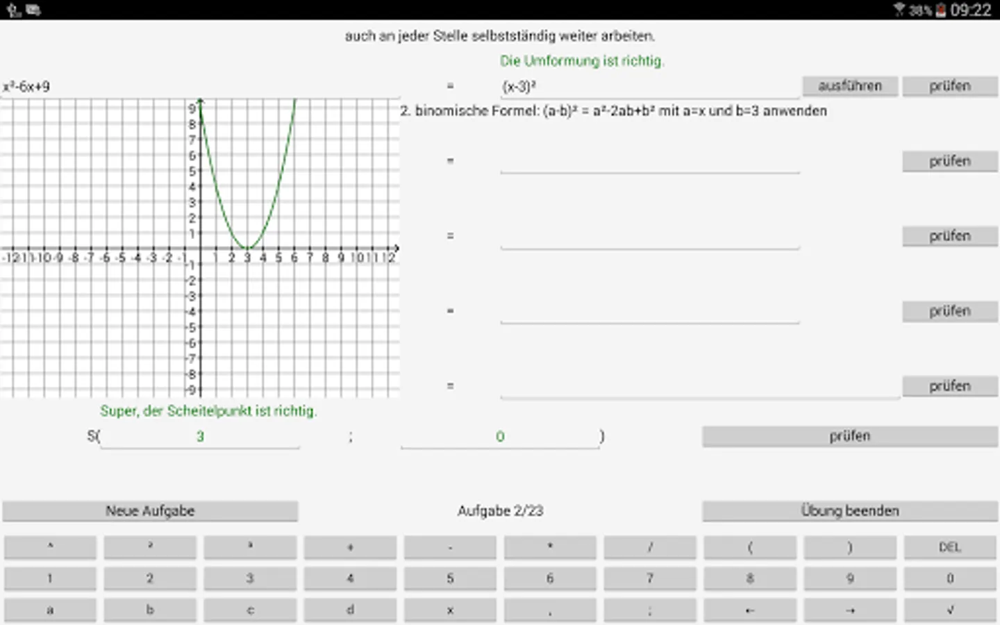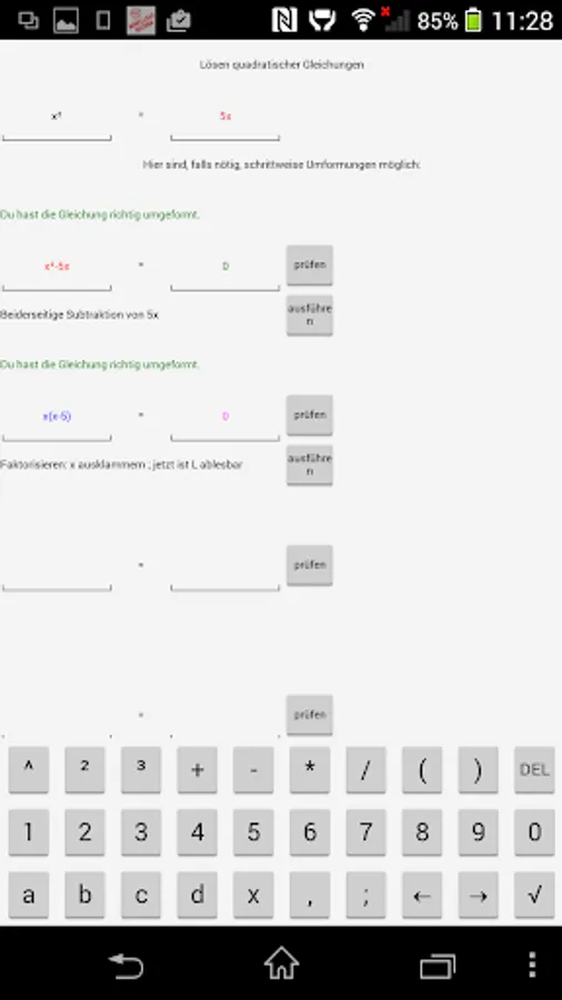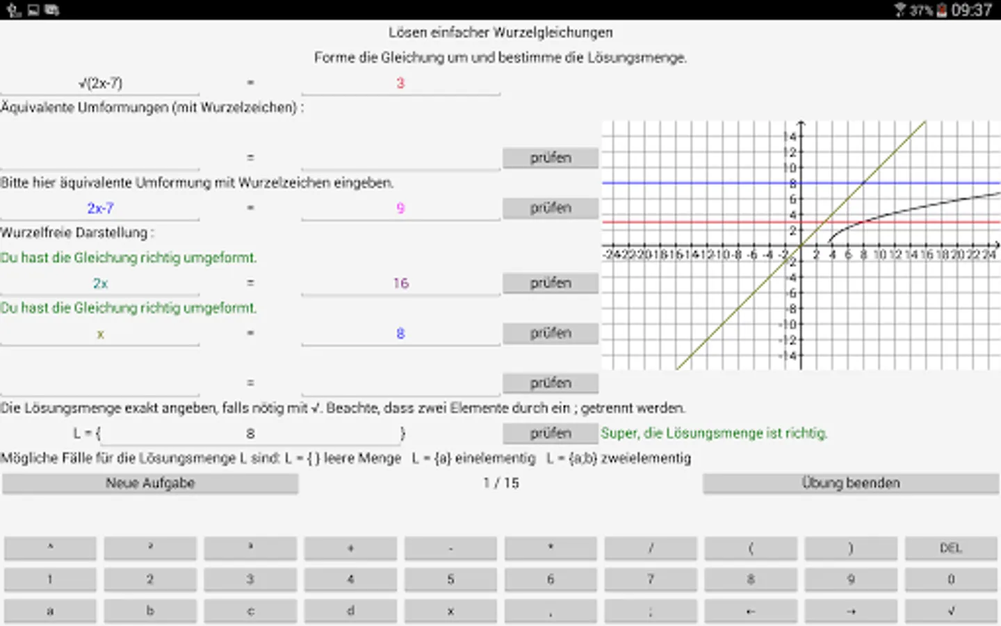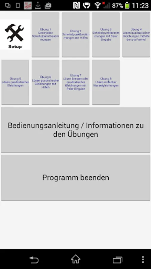 By 8 exercises of the program to pupils / students are given the opportunity, quadratic functions, quadratic equations and root equations work up as independently as possible in the fields of existing deficits. The specific capabilities of your computer (aids, differentiated controls, illustrating ways) are used.