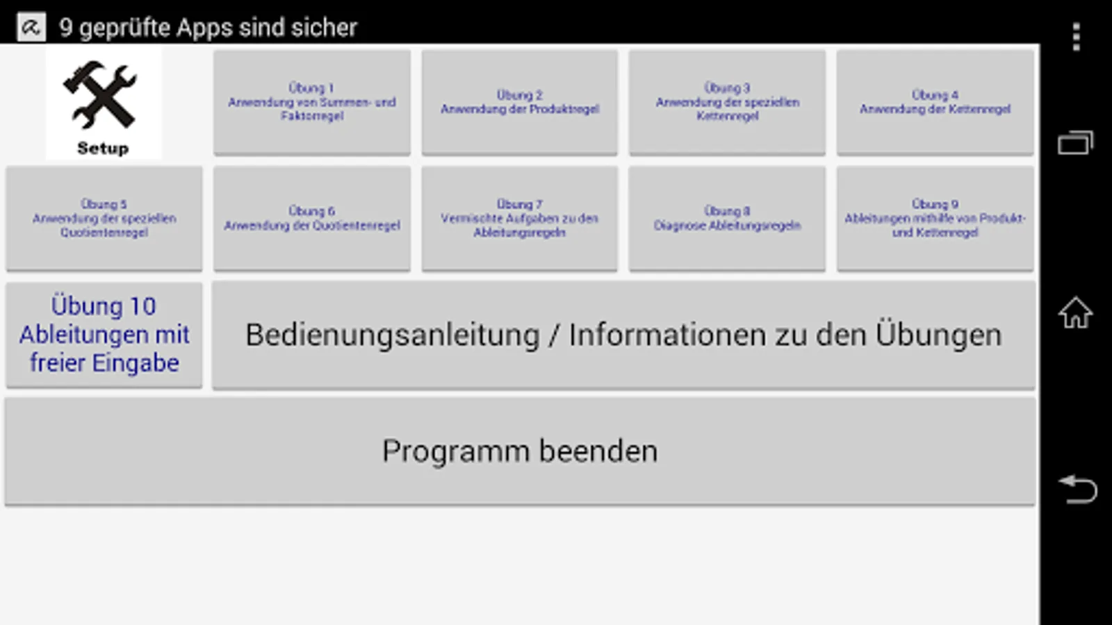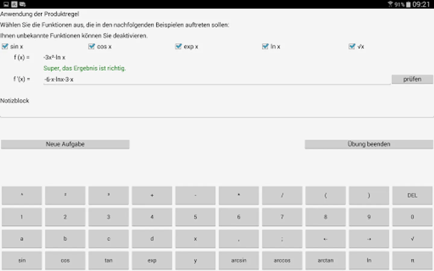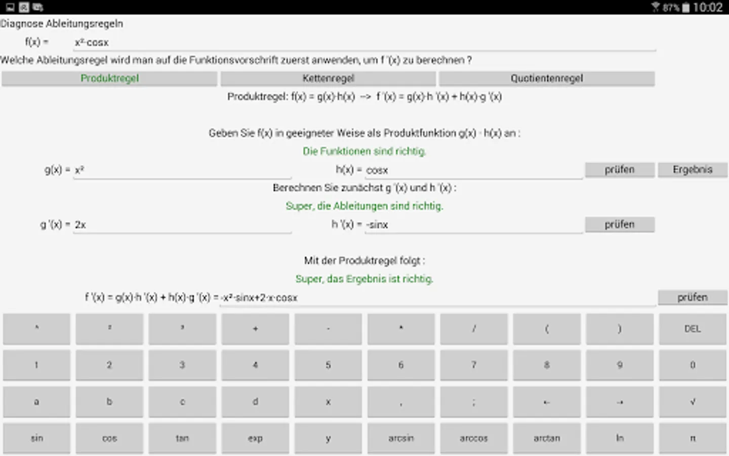 Function studies on extremes, inflection points, monotony behavior, etc. are an important part of mathematics teaching in high school. The secure computing the derivative of a function is one of the essential basic techniques here. In the calculations, the derivation rules (sum and factor rule, product rule, chain rule and quotient rule) have a key role.