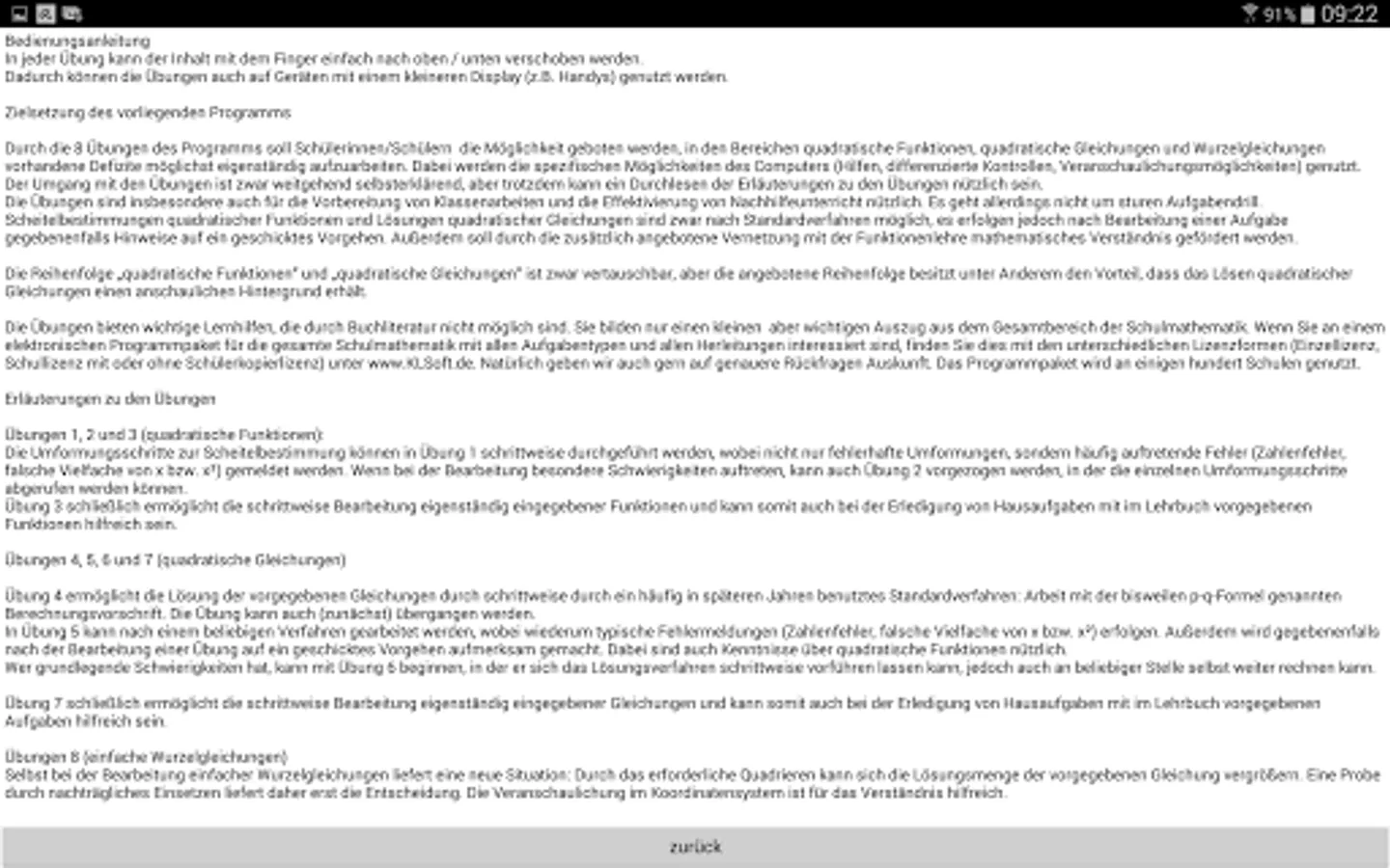 The exercises provide essential learning tools that are not possible by the book literature. The tasks only form a small but significant excerpt from the complete range of school mathematics. If you are interested in an electronic program package for the whole school mathematics with all types of tasks and all the derivations, you can find it with the different license types (single license, education license with or without students copy license) under www.KLSoft.de.