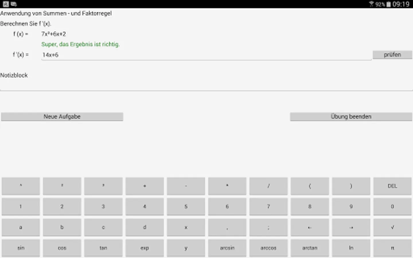 If this causes difficulties, helping the diagnosis exercises 8 and 9. They ensure joined by Aids with differentiated error messages that the differentiation rules are correctly applied.