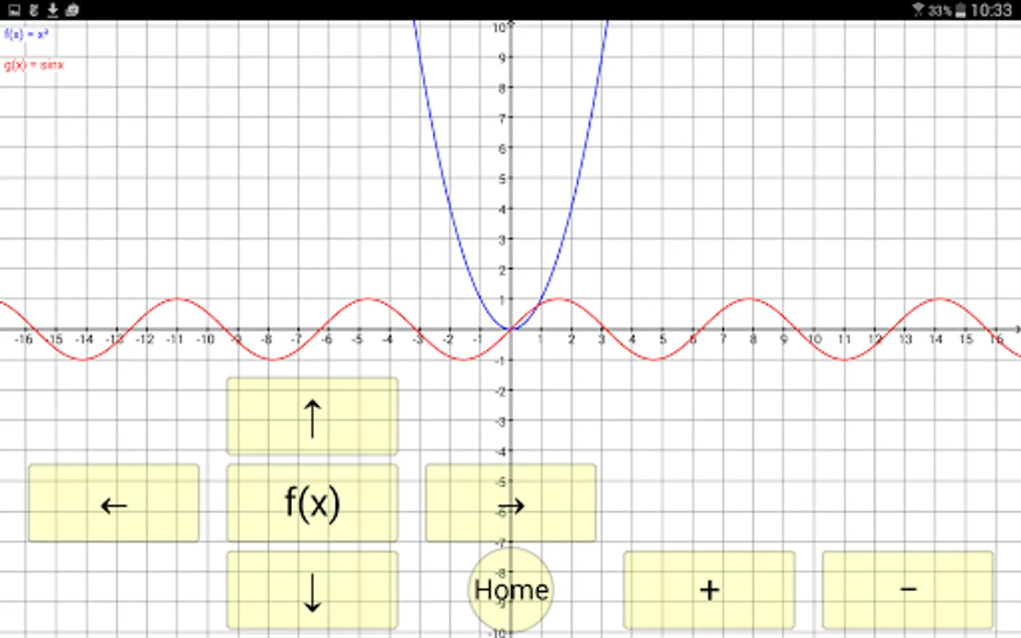 The graphing calculator provides the ability to display up to 3 function graph.