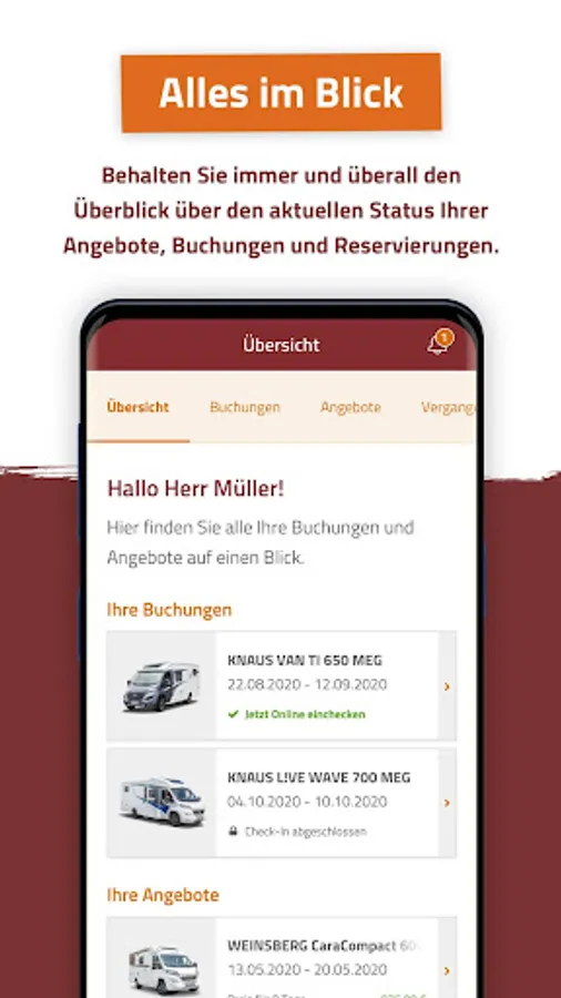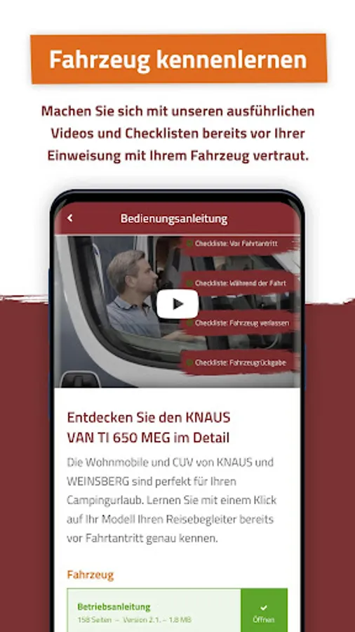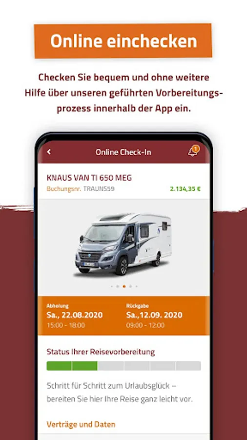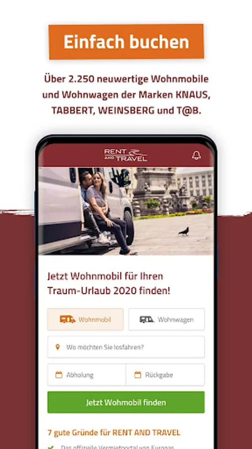 Experience your dream vacation with a mobile home or caravan - now even more mobile and independent with the RENT AND TRAVEL app! Whether booking details, convenient online check-in, vehicle introductions or useful checklists. Everything in one app!