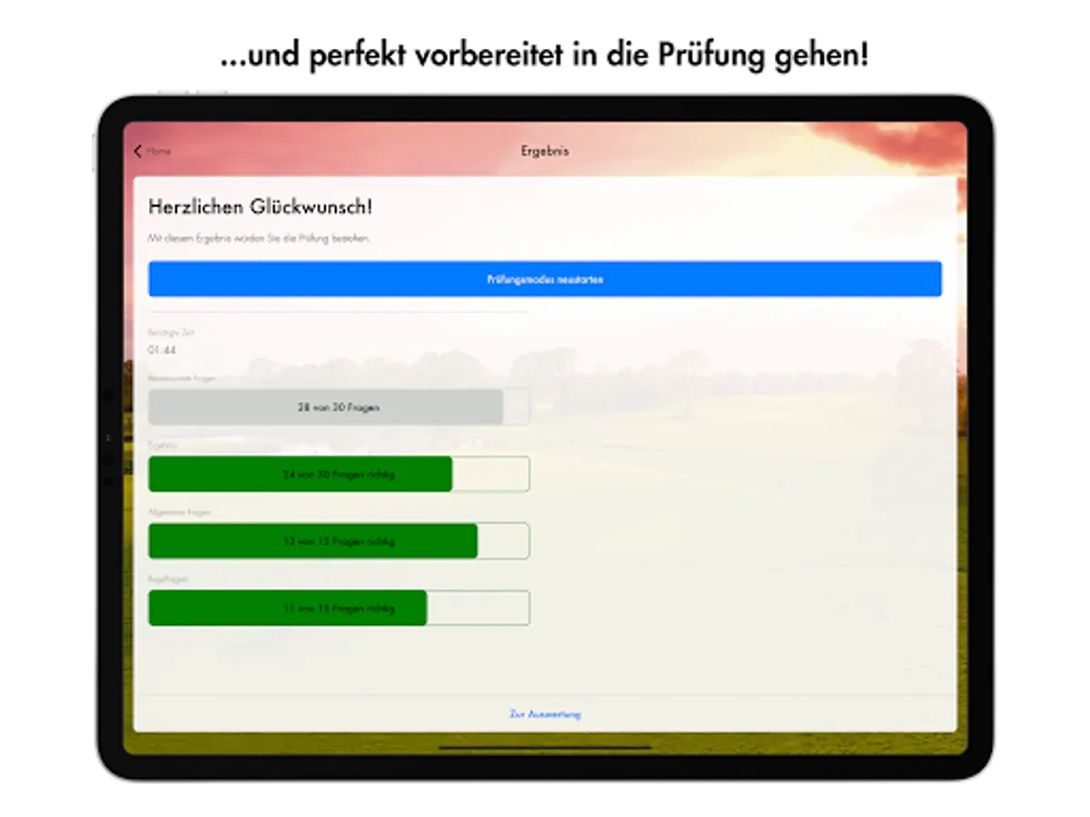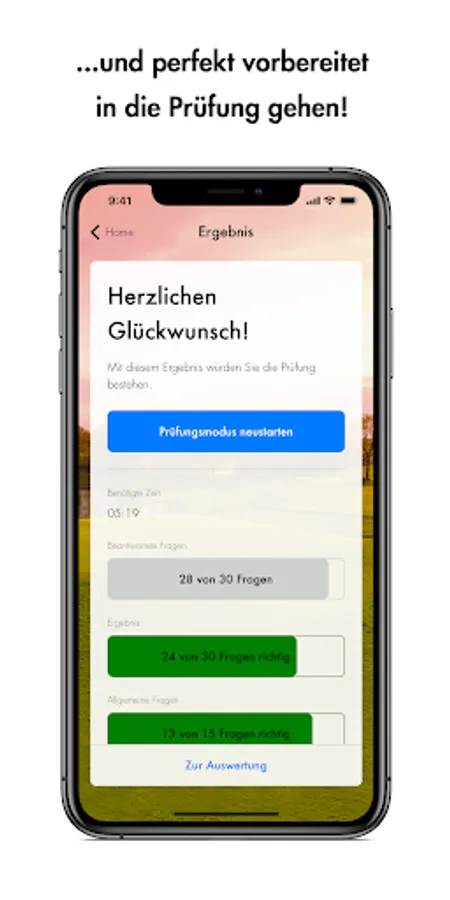 In addition to two different exercise modes for learning, the app also offers you an exam mode for ideal preparation for the theoretical part of the proficiency test.