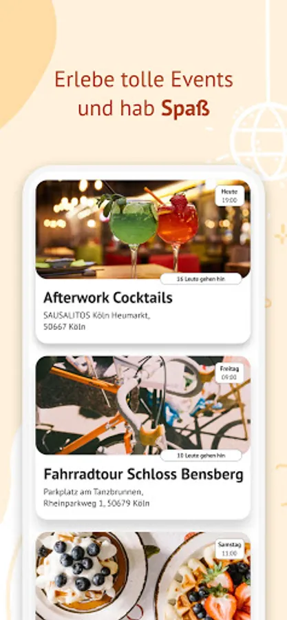 The completely free dating app for Cologne. This is where the Cologne singles meet. Thousands have already met here. You can get to know new people in a relaxed manner at the many free events. Arrange a romantic date for two. Start a video date from the comfort of your couch.