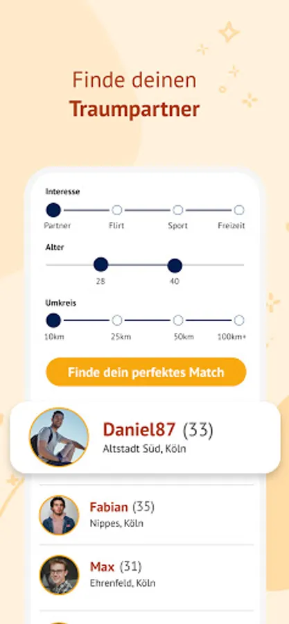 This is very important to us. That's why we have many features in our free dating app to keep you safe. Because you should be able to concentrate on the person who really interests you when looking for a partner. With whom you want to meet because you feel that it fits. Who you want to have a wonderful time with. And that will make you happy in the future. This is what a free dating app should feel like.