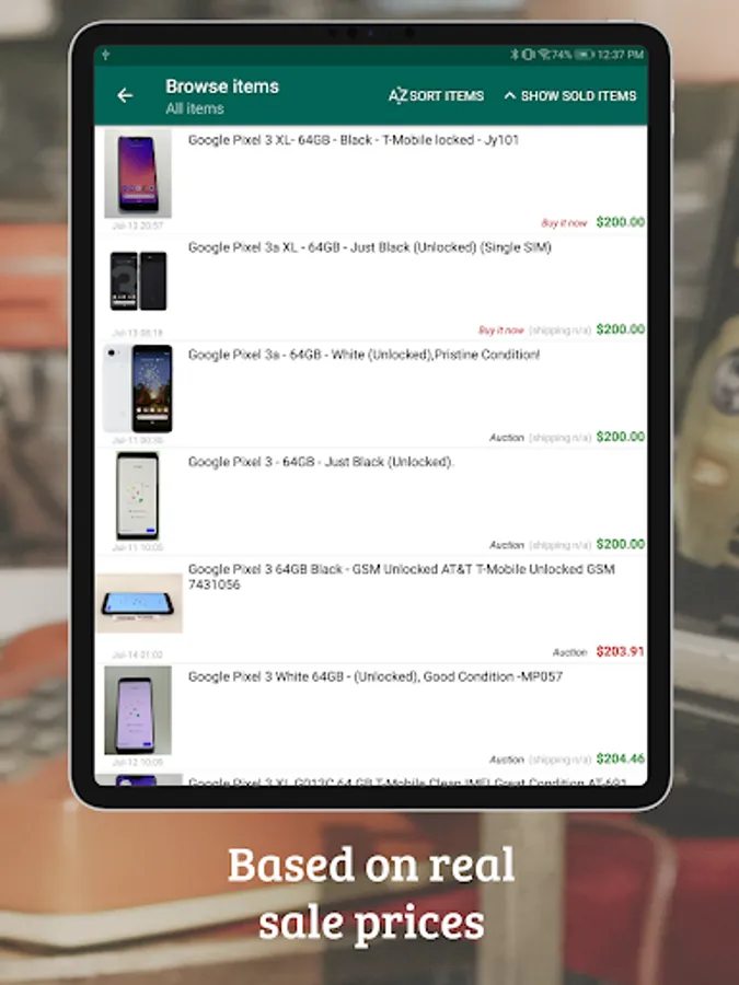 Perfect to find out what you can earn selling something, or to check if a promising bargain really is one. The ideal app for any powerseller, sales agent, ambitioned eBayer and for use on flea markets, yard sales and more ...