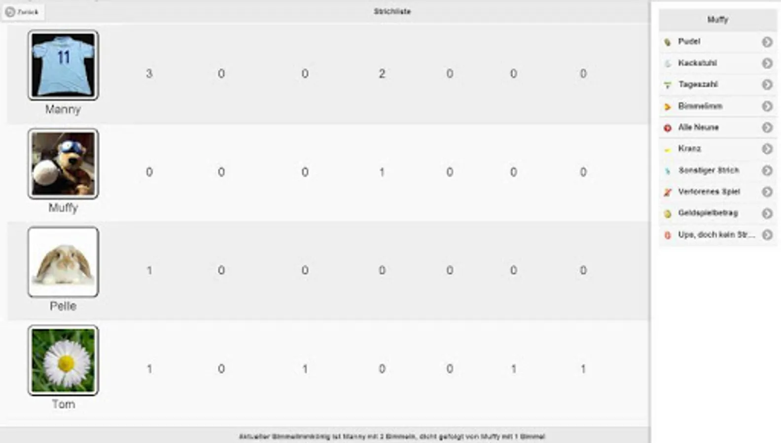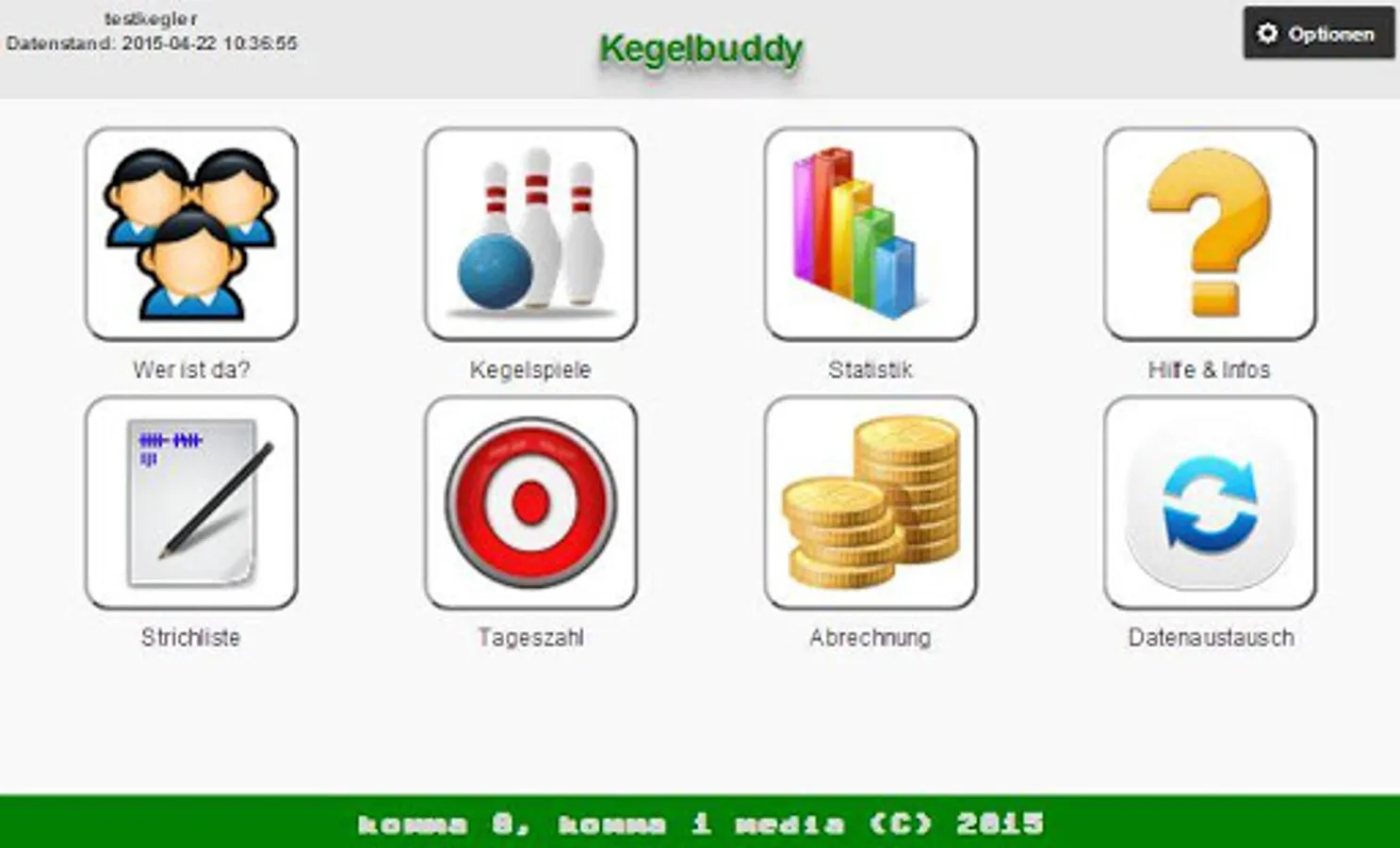 Some of the features: News-ticker (who's in front etc.), Games to look up, long-term statistics, individual photos or pictures for the bowlers, drawing of the "bad number of the day", transfer all data between you and your bowling fellows via internet, send payment requests via Mail or Whatsapp and much more.