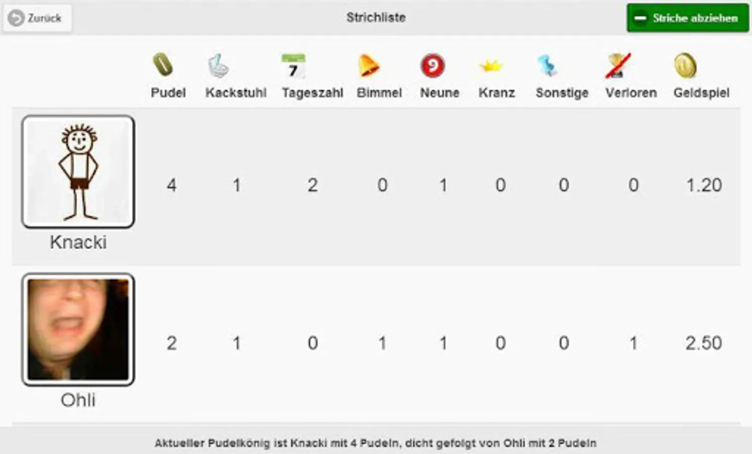 With the your new buddy you can manage your bowling round comfortably, perform the "Pudel"-tally up to the smallest detail, and at the end of the evening Kegelbuddy even deals with the whole calculation for you. There are long-term statistics, games for looking up and lots of other extras, so you can focus on what's really important ...