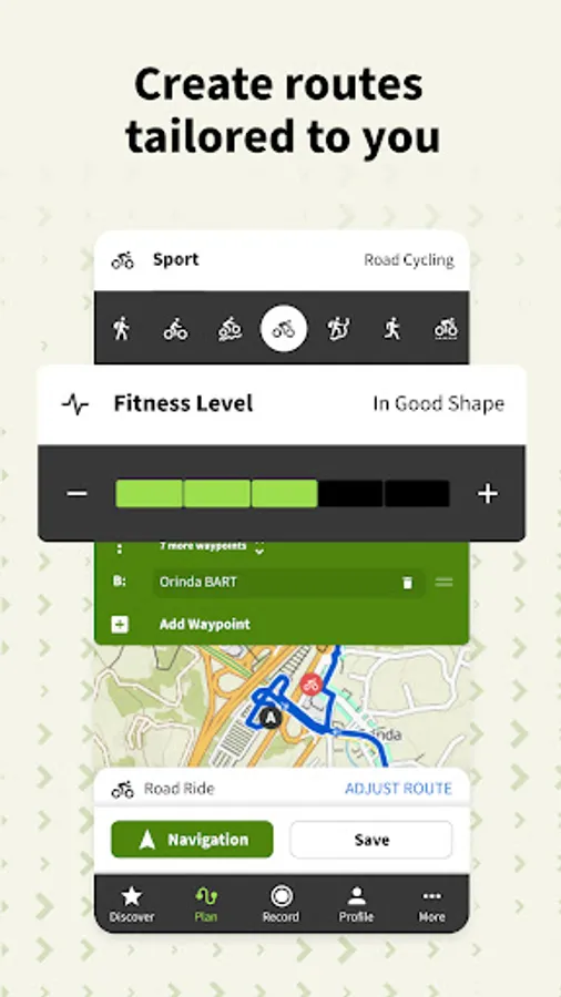 Get the route perfect for your sport—be it smooth asphalt for your road bike, singletrack for your mountain bike, silent cycling paths for touring, or natural hiking trails for your hikes. Plan down to the last detail with at-your-fingertips info like surface, difficulty, distance, and elevation profile, and check your running, walking or bicycle progress with the GPS tracker.