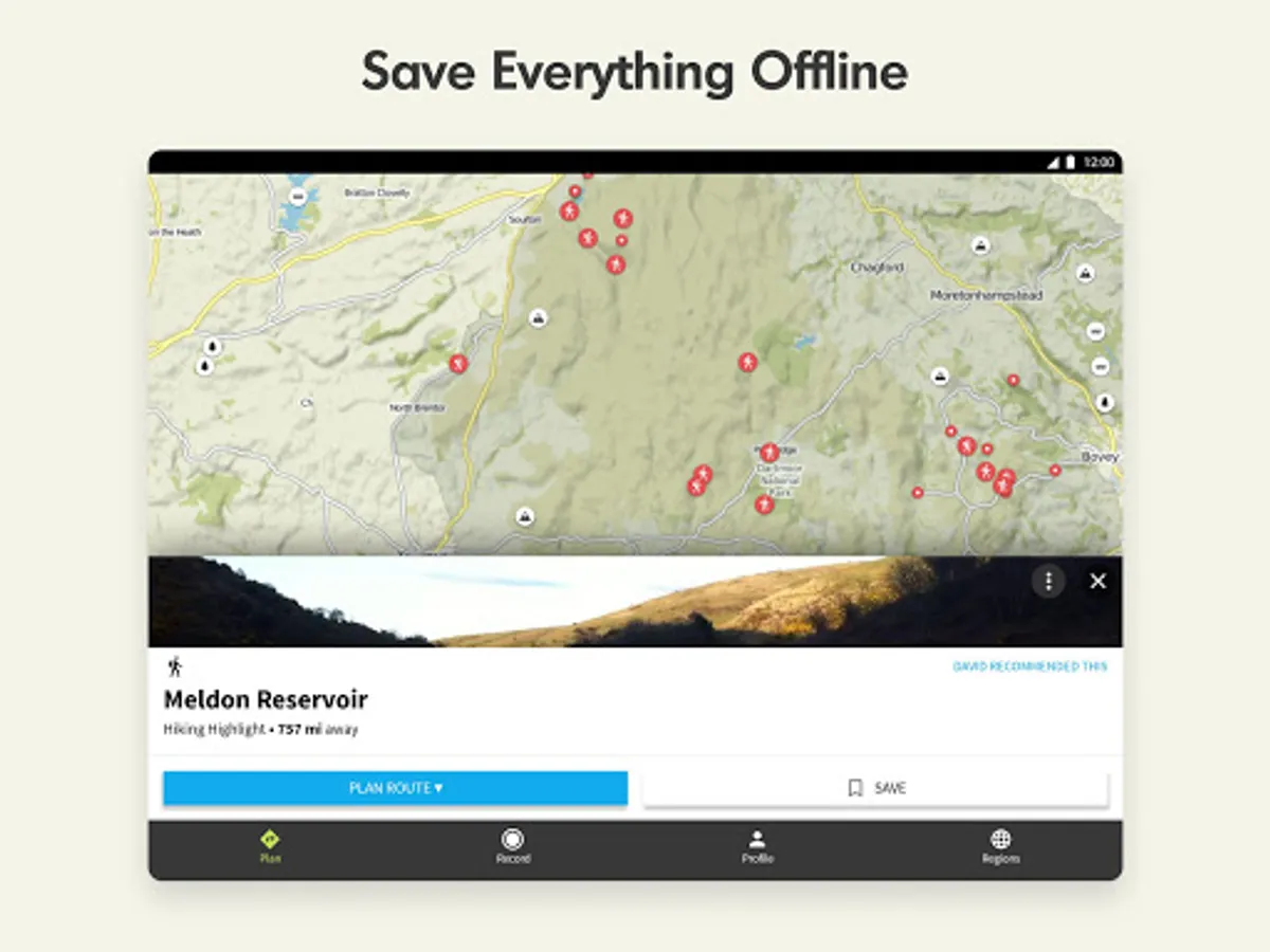 Download your planned outdoor adventures and save topographic maps with one tap. Navigate the outdoors even when the internet is down or unreliable. Differentiate hiking trails, singletrack, paved roads, MTB trails, terrain, and land cover with one glance.