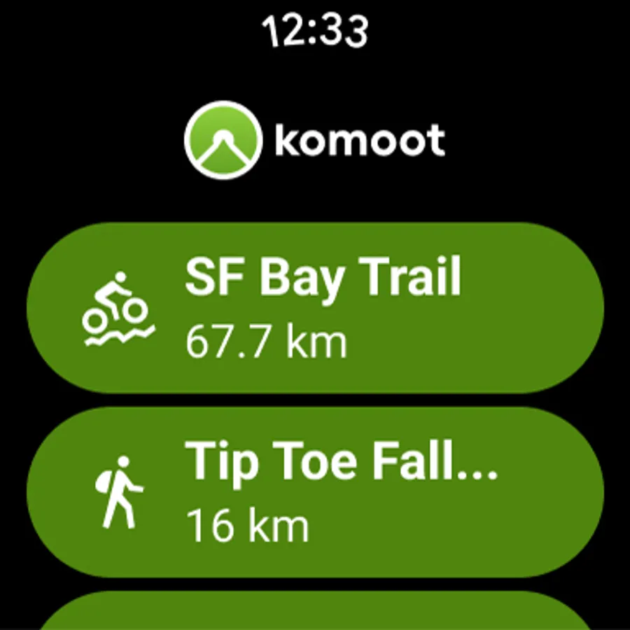 Whether you prep like a pro on your desktop or plan a route on the go, komoot automatically syncs your bike routes, hiking and running tracks, mtb trail photos across all devices, including your smartphone, desktop, tablet and Wear OS. You can use the komoot complication icon on your Wear OS device to quickly launch the komoot app from your watch’s homescreen. Use the komoot app tiles to easily start navigation or select a planned Tour to begin.